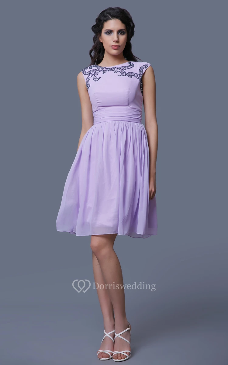 Short A-Line Sleeveless Chiffon Dress With Beadwork and Jewel Neck