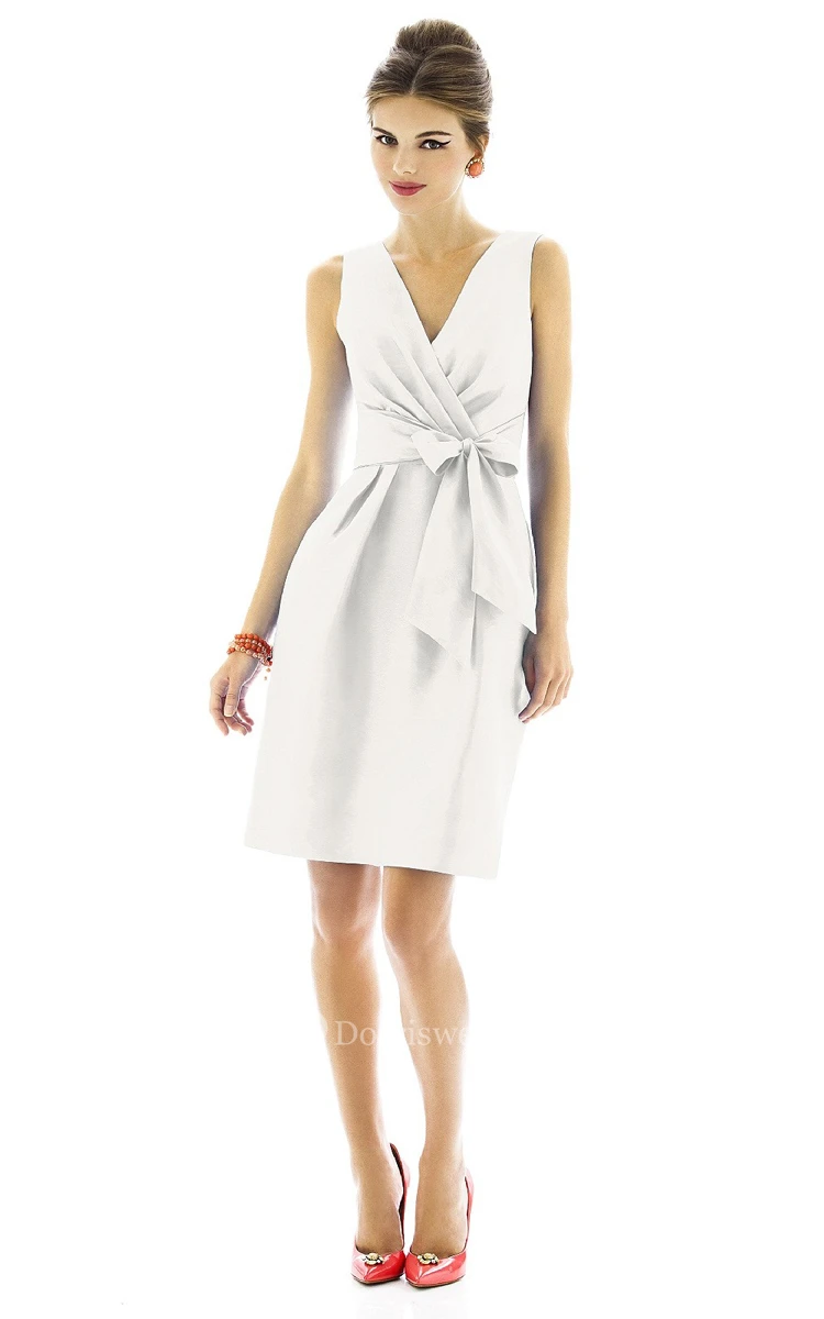 Short A-Line V-Neck Vibrant Dress With Wit Bow