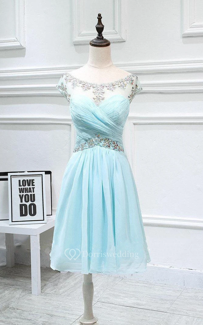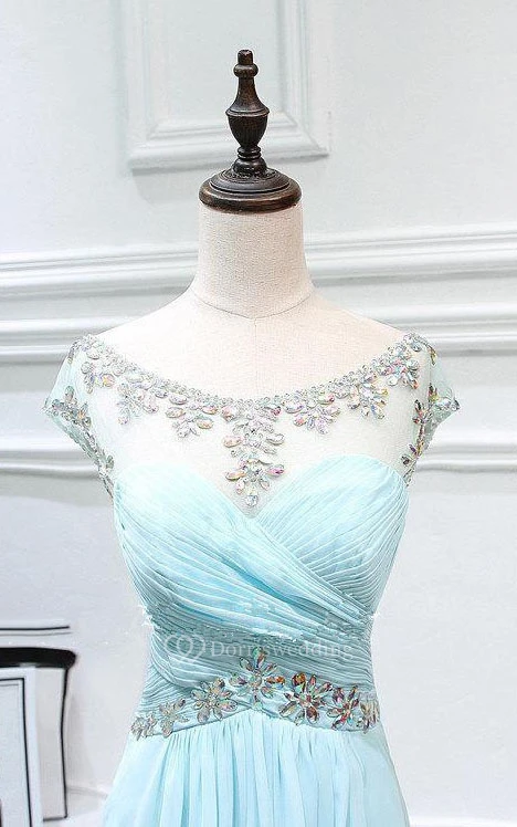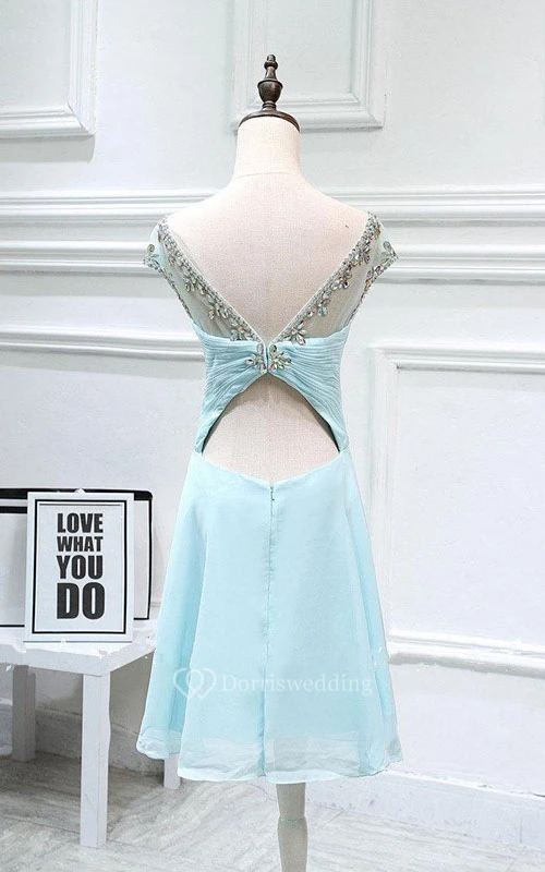Short Cap Sleeve Chiffon With Beading And Ruching