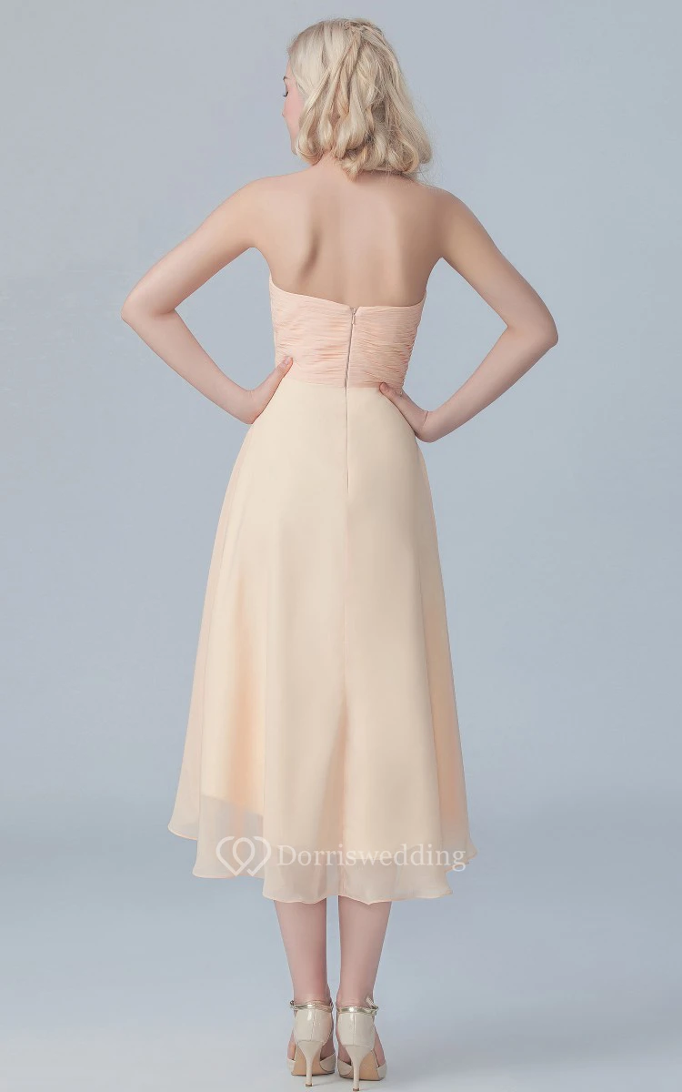 Short Chiffon Side Drap High-Low Dress With Flowers