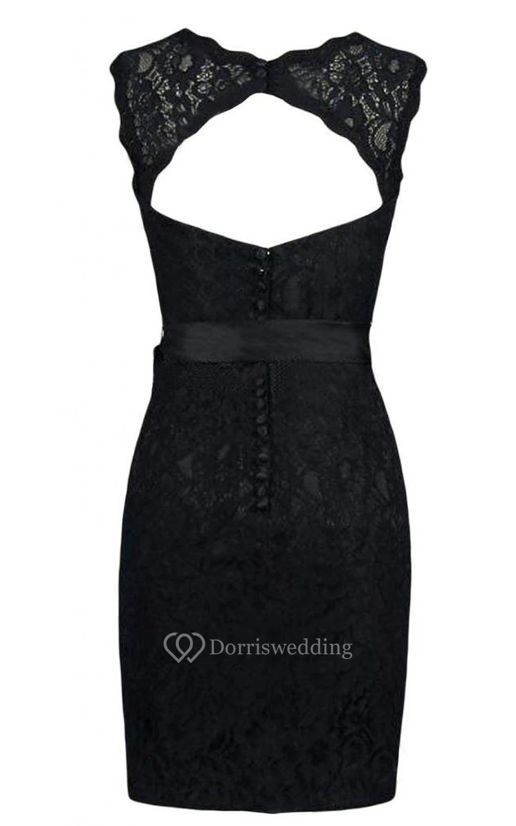Short Illusion Neckline Dress With Keyhole Back