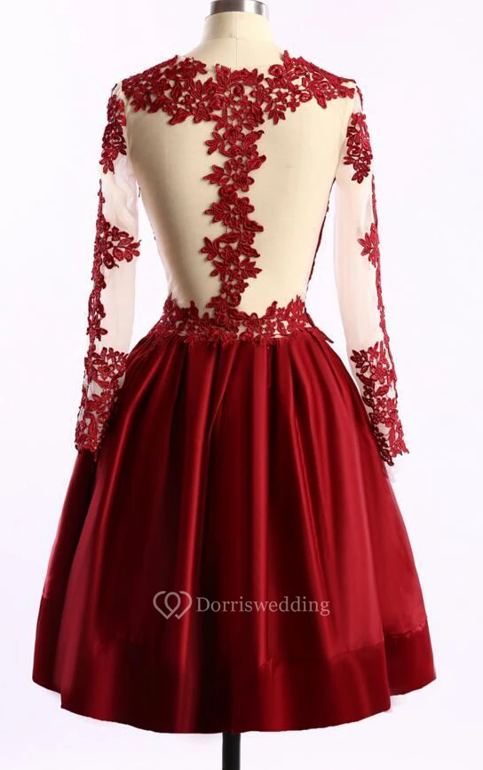 Short Long Sleeve Appliques Keyhole Lace Satin Dress