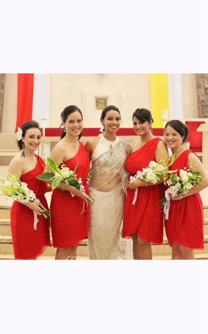 Short One-shoulder A-line Chiffon Dress with Pleats