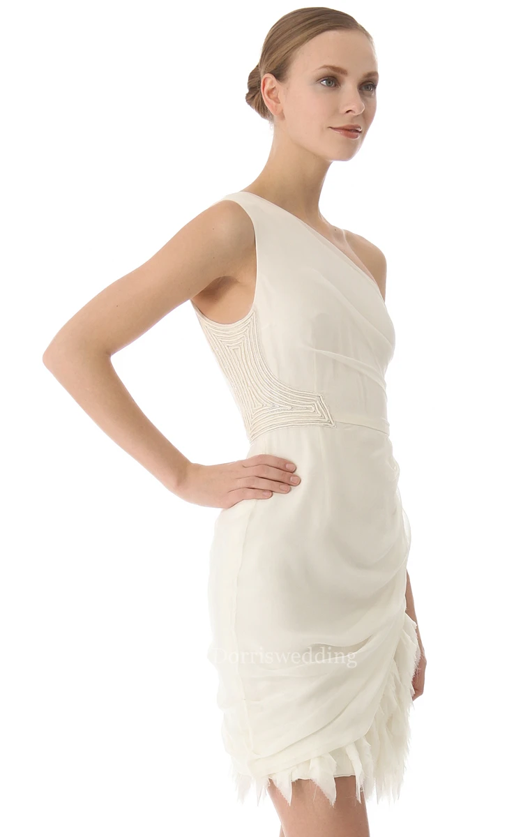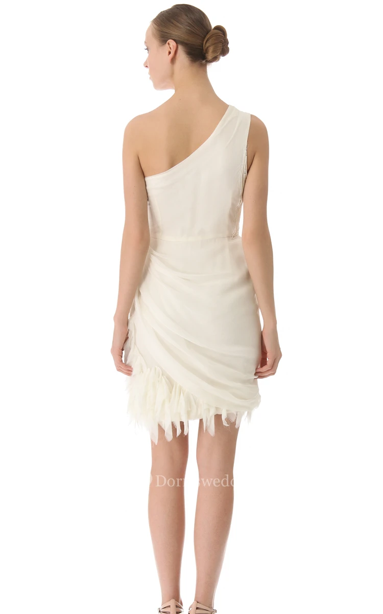 Short One-shoulder Sheath Side-draped Chiffon Dress