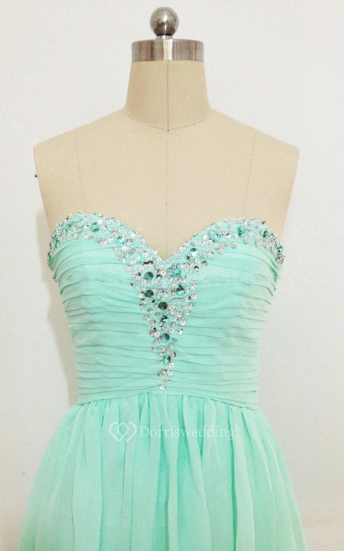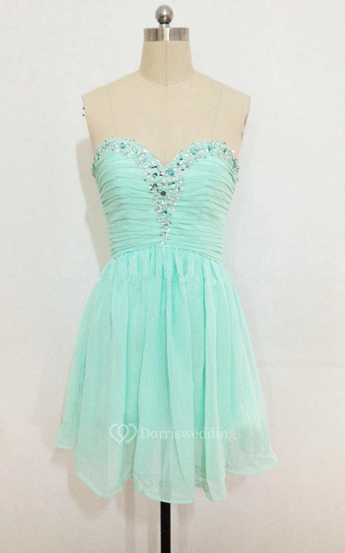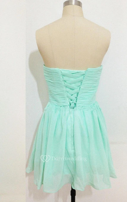 Short Ruched Chiffon Dress With Sequins And Lace-up Back