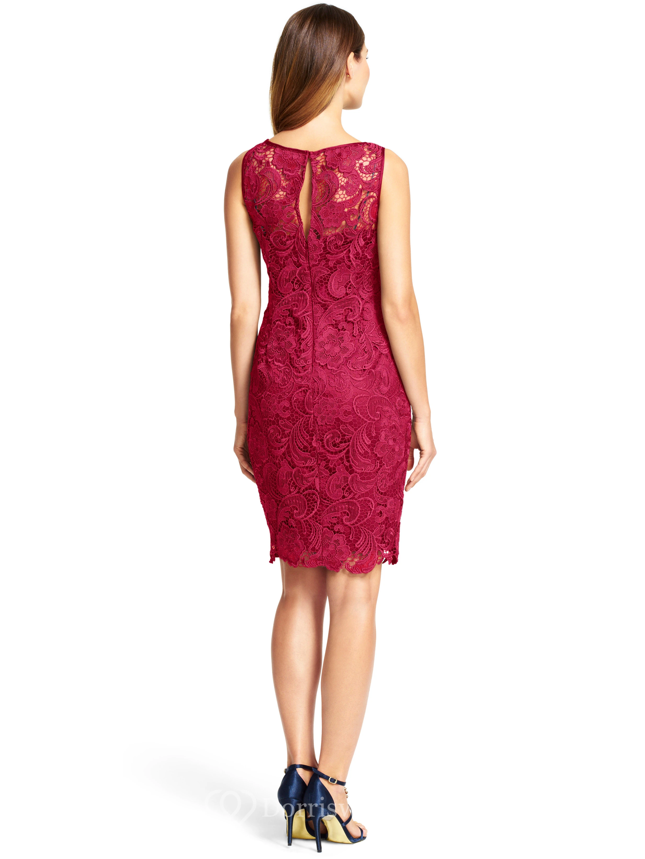 Short Sheath Appliqued Bateau Neck Sleeveless Lace Bridesmaid Dress