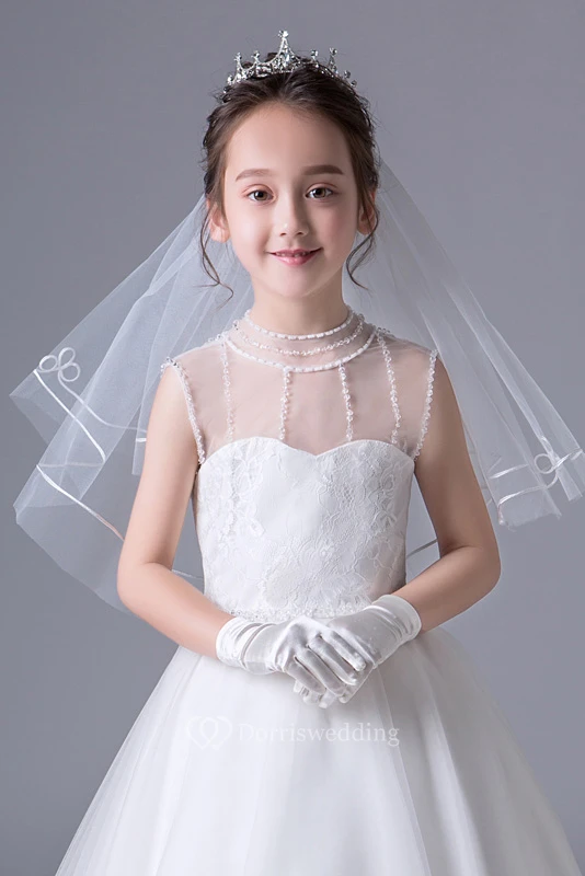 Short Single Layer Lace Flower Girl Veil