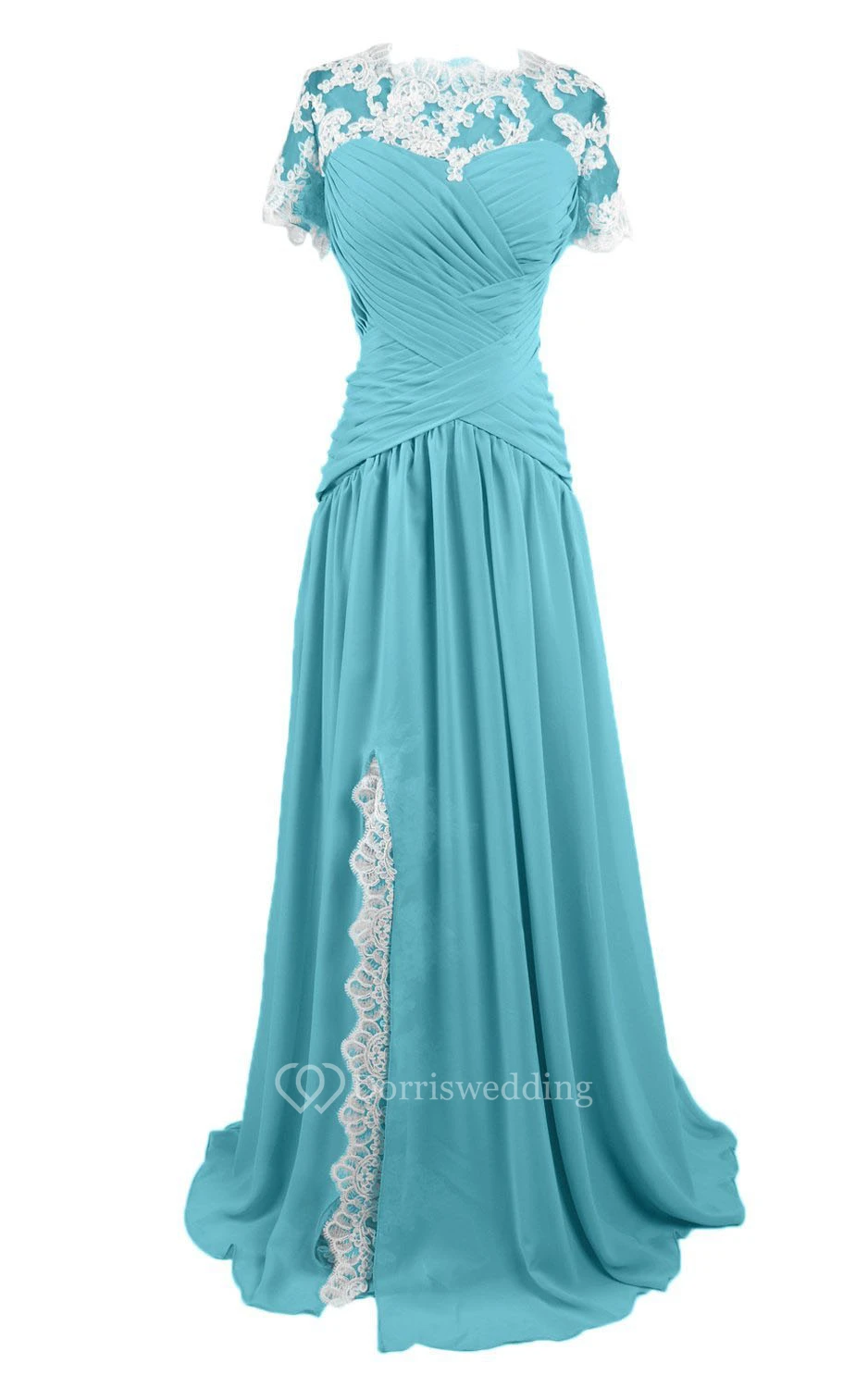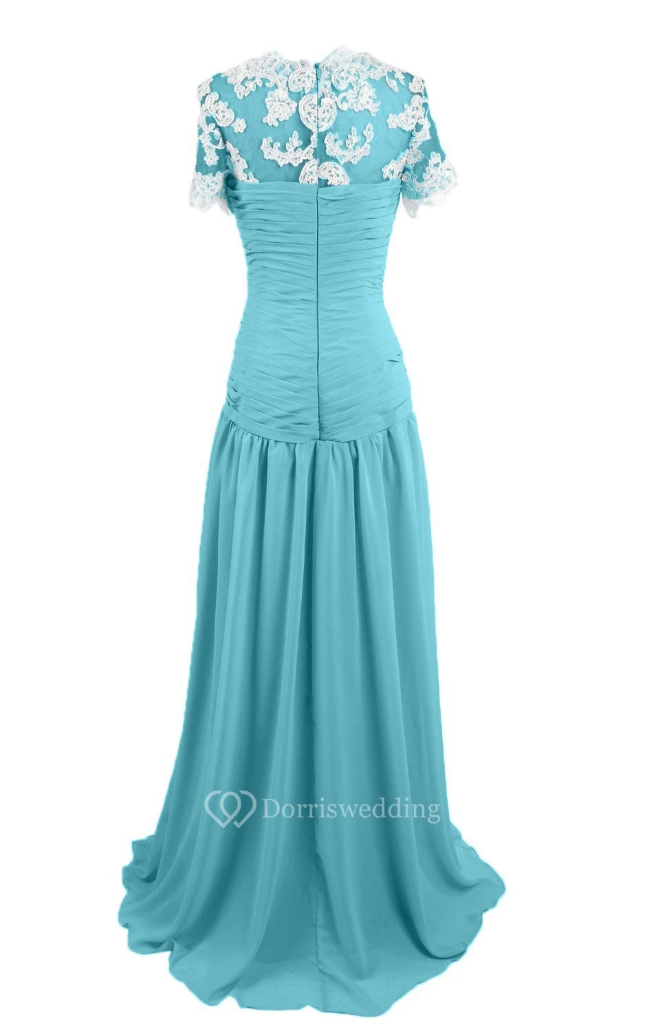 Short Sleeve High Neck Long Pleated Chiffon Dress