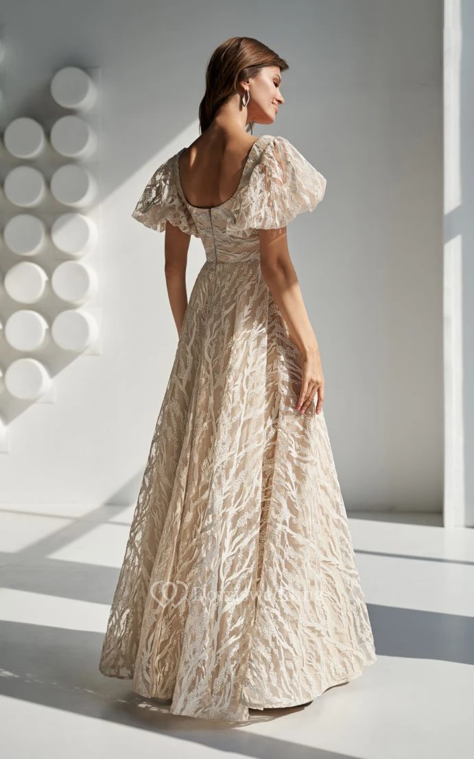 Short-sleeve Sheath Empire A-line Dress with Low-v Back