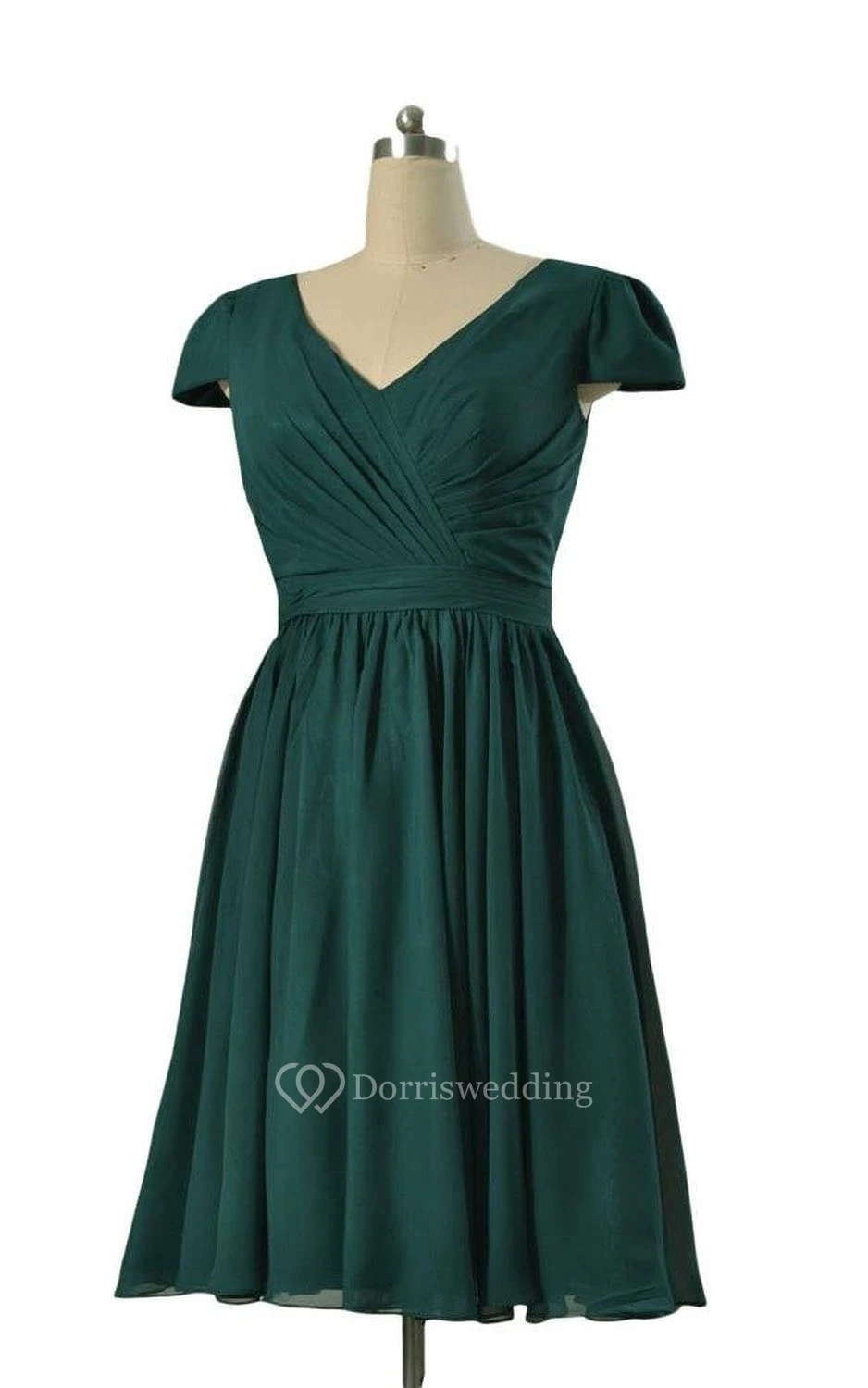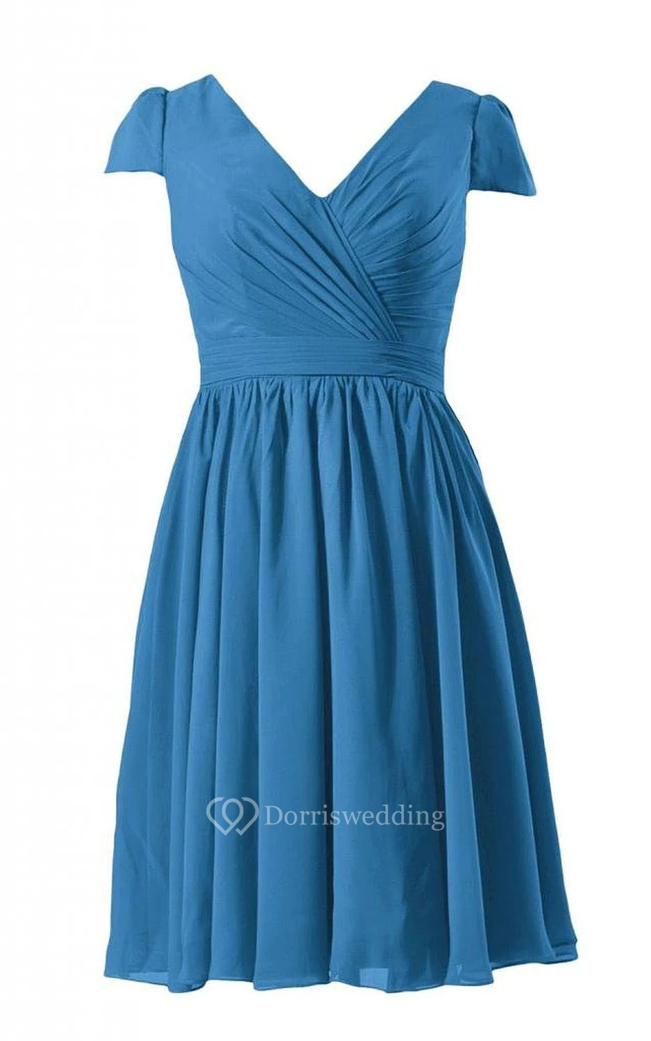 Short Sleeve V-neck Short Pleated Chiffon Dress