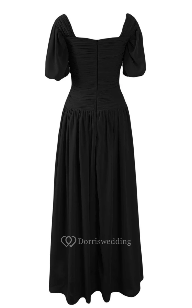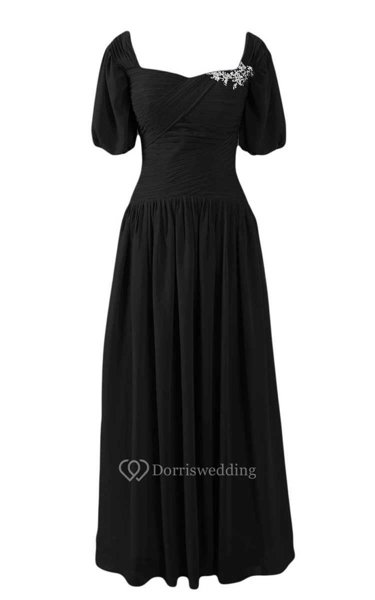 Short-sleeved A-line Chiffon Gown With Pleats