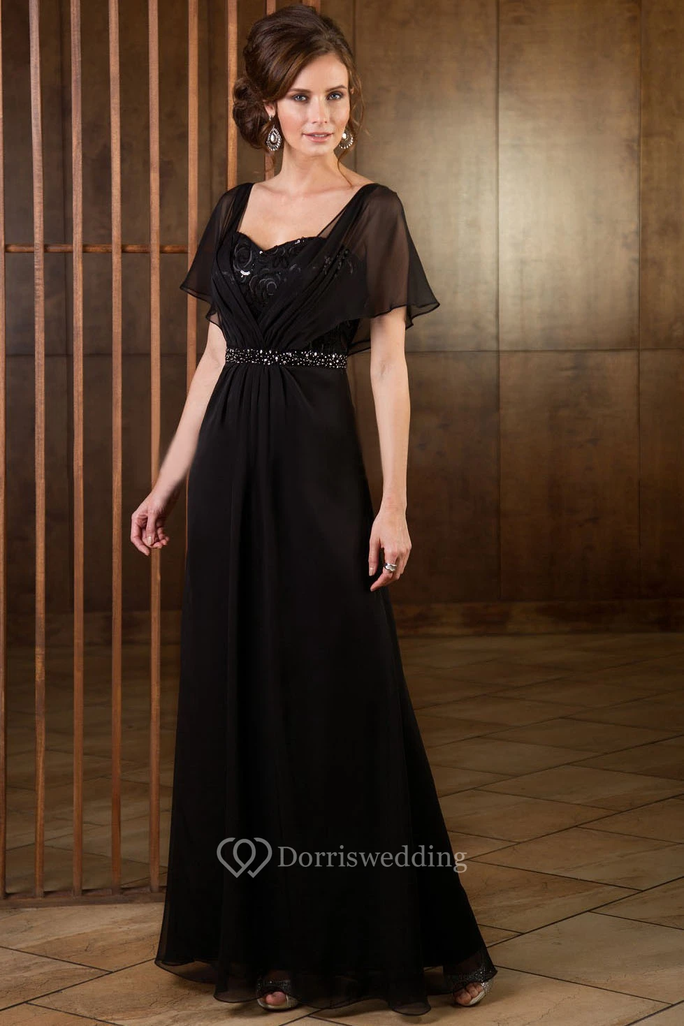 Short-Sleeved A-Line Floor-Length Mother Of The Bride Dress With Sequins