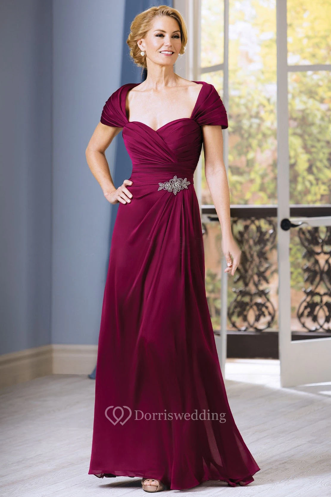Short-Sleeved A-Line Gown With Beadings And Ruching