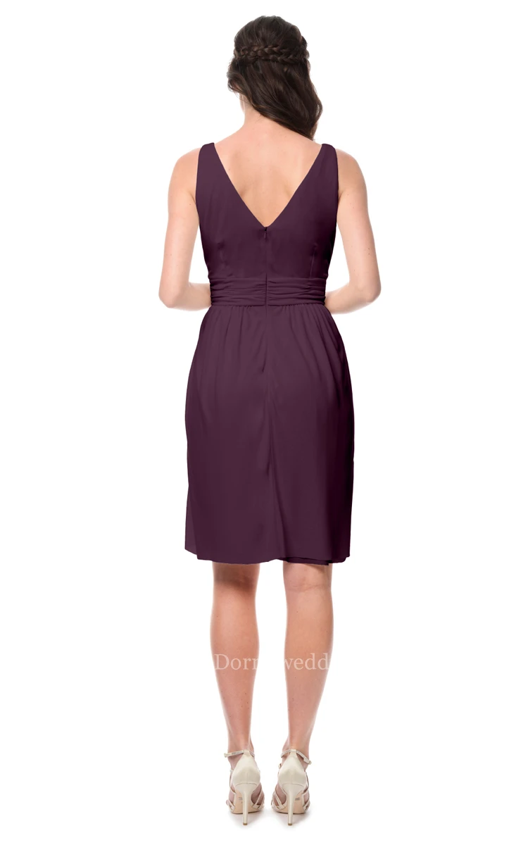 Short Sleeveless V-Neck Chiffon Dress With Low-V Back