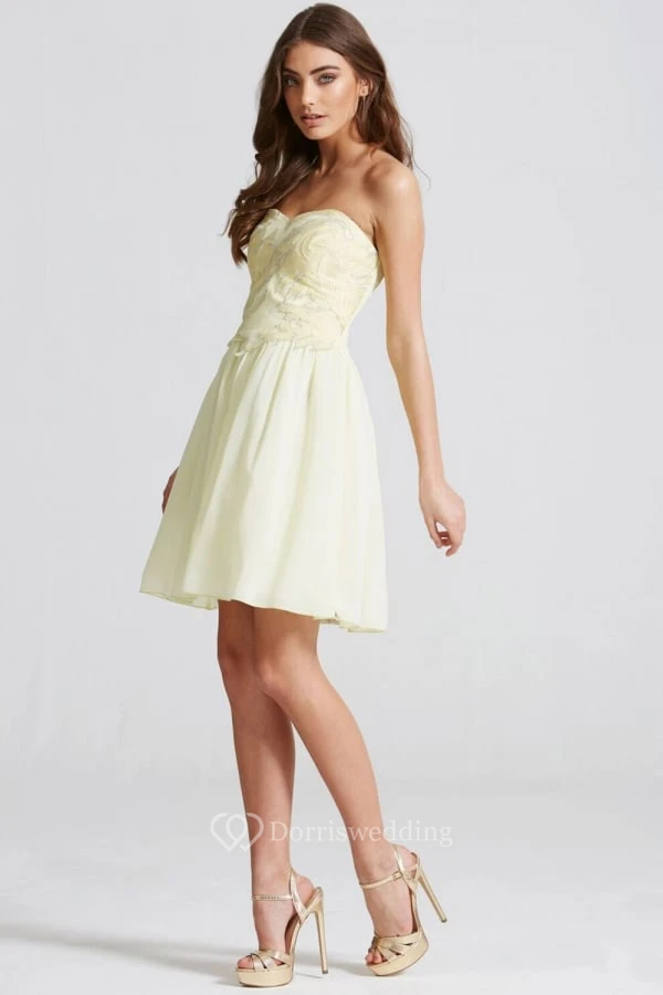 Short Sweetheart Sleeveless Beaded Chiffon Bridesmaid Dress