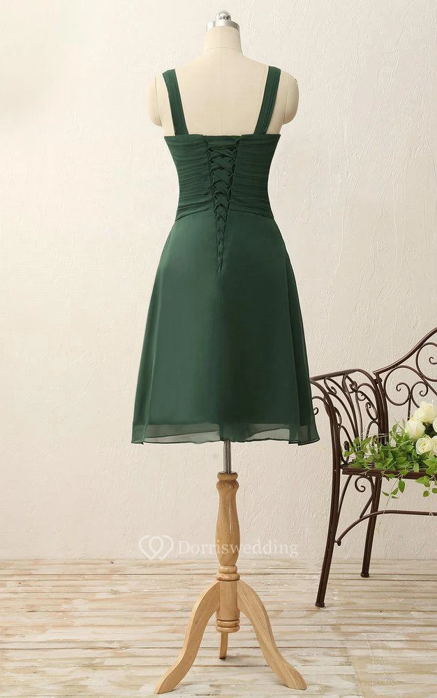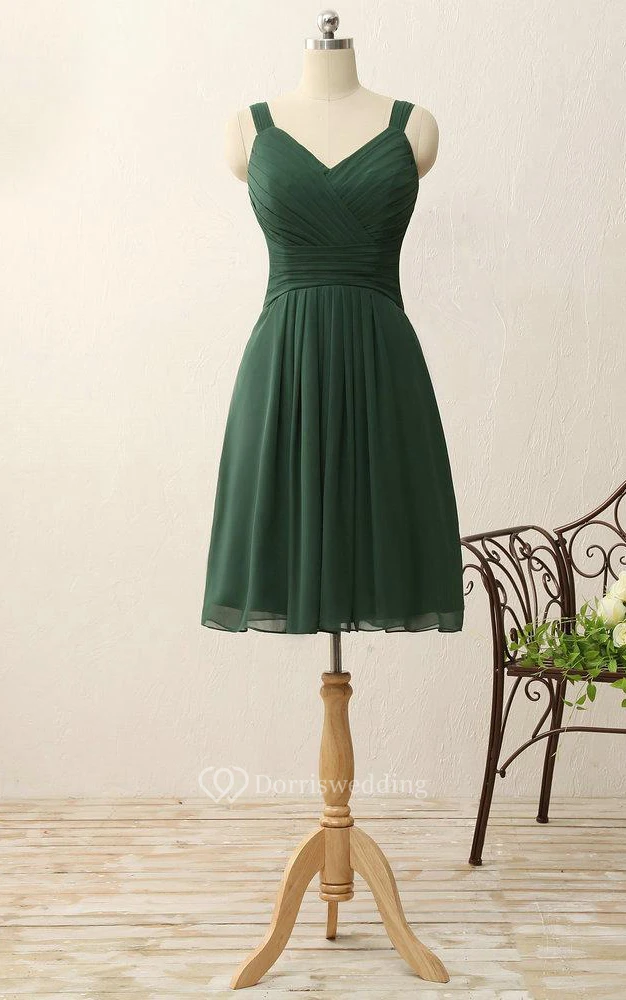 Short V-neck A-line Knee-length Pleats Chiffon Dress