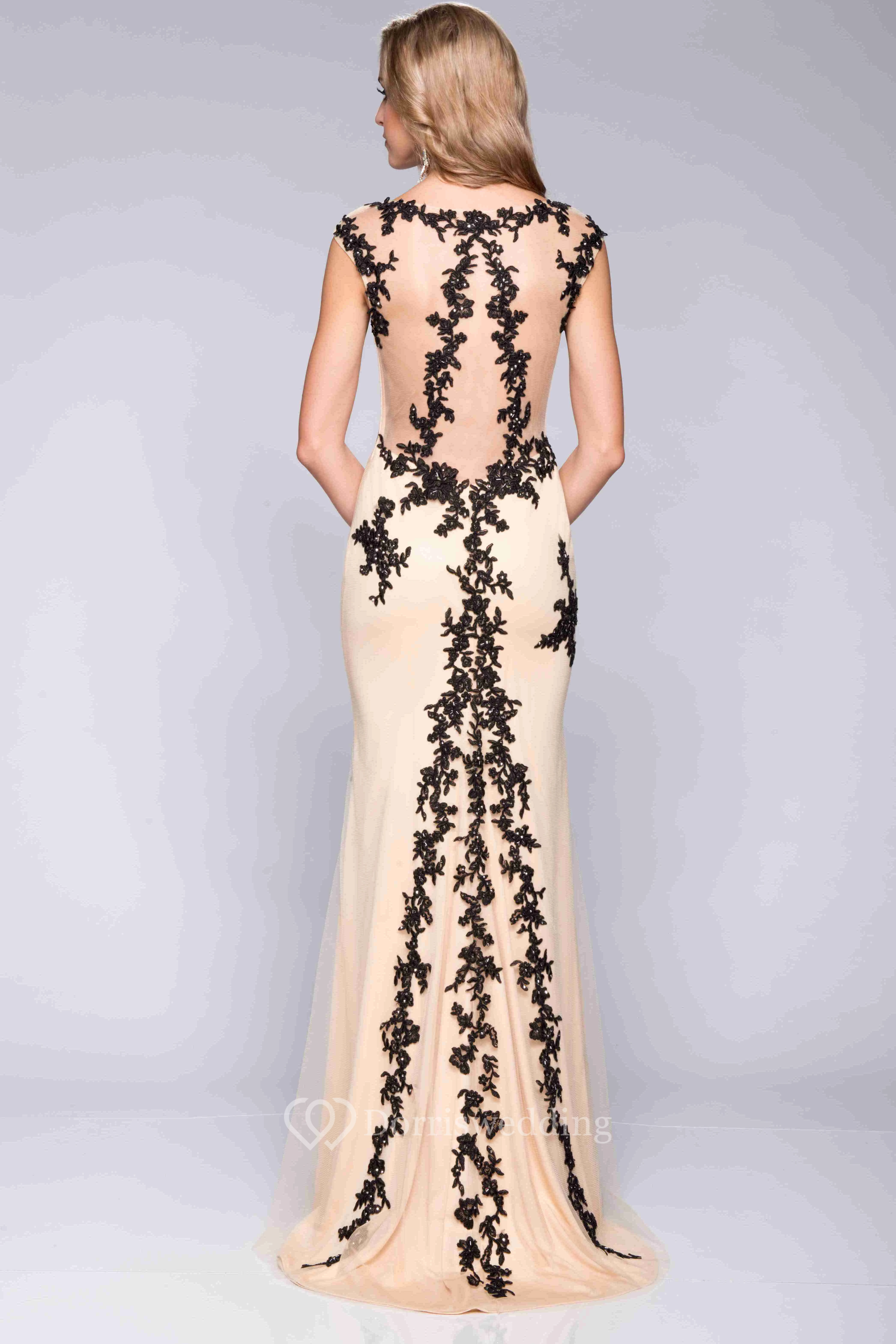 Side Slit Appliqued Sheath Jersey Prom Dress With Bateau Neck