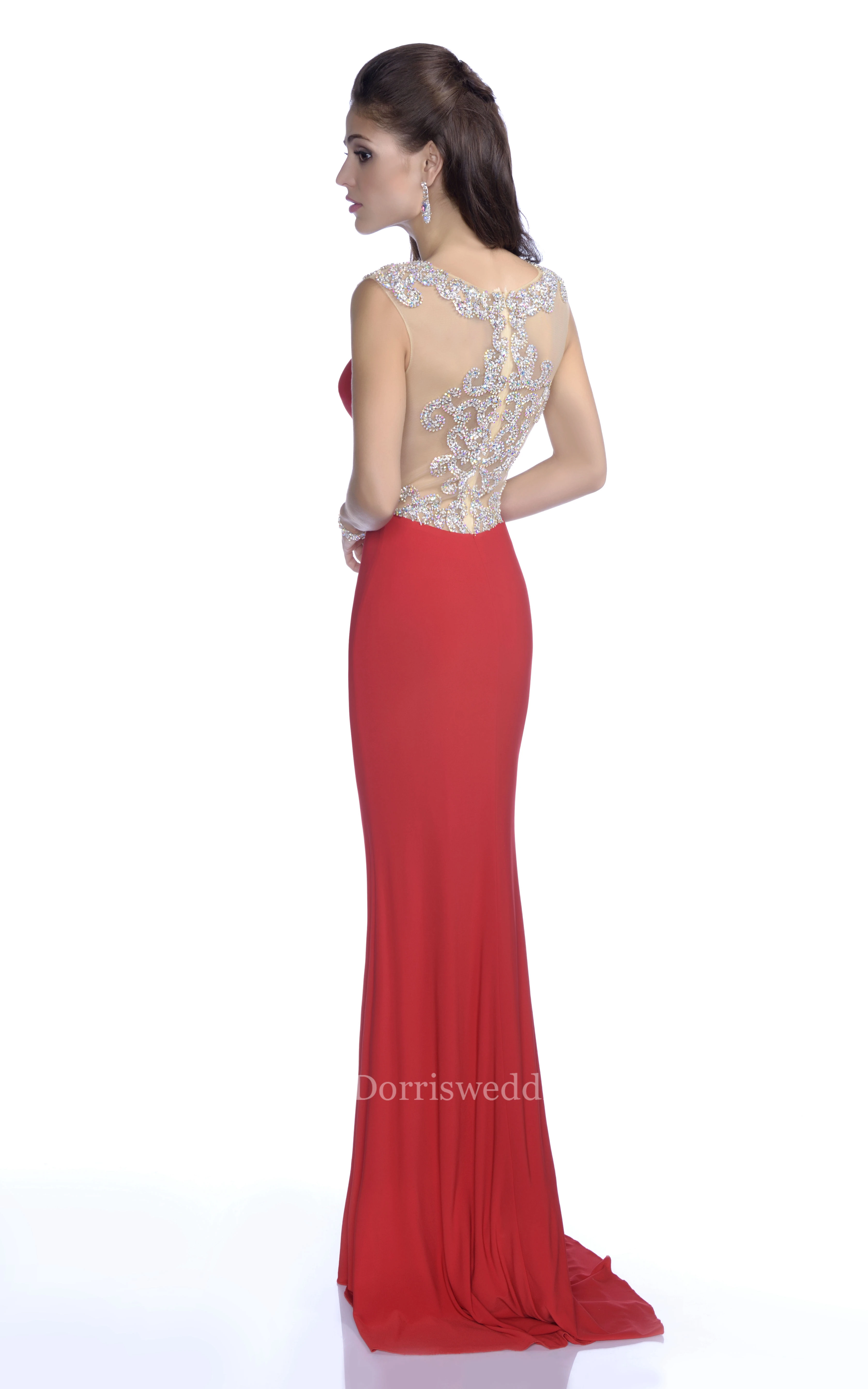 Side Slit Jersey Trumpet Sleeveless Prom Dress With Beaded Appliques