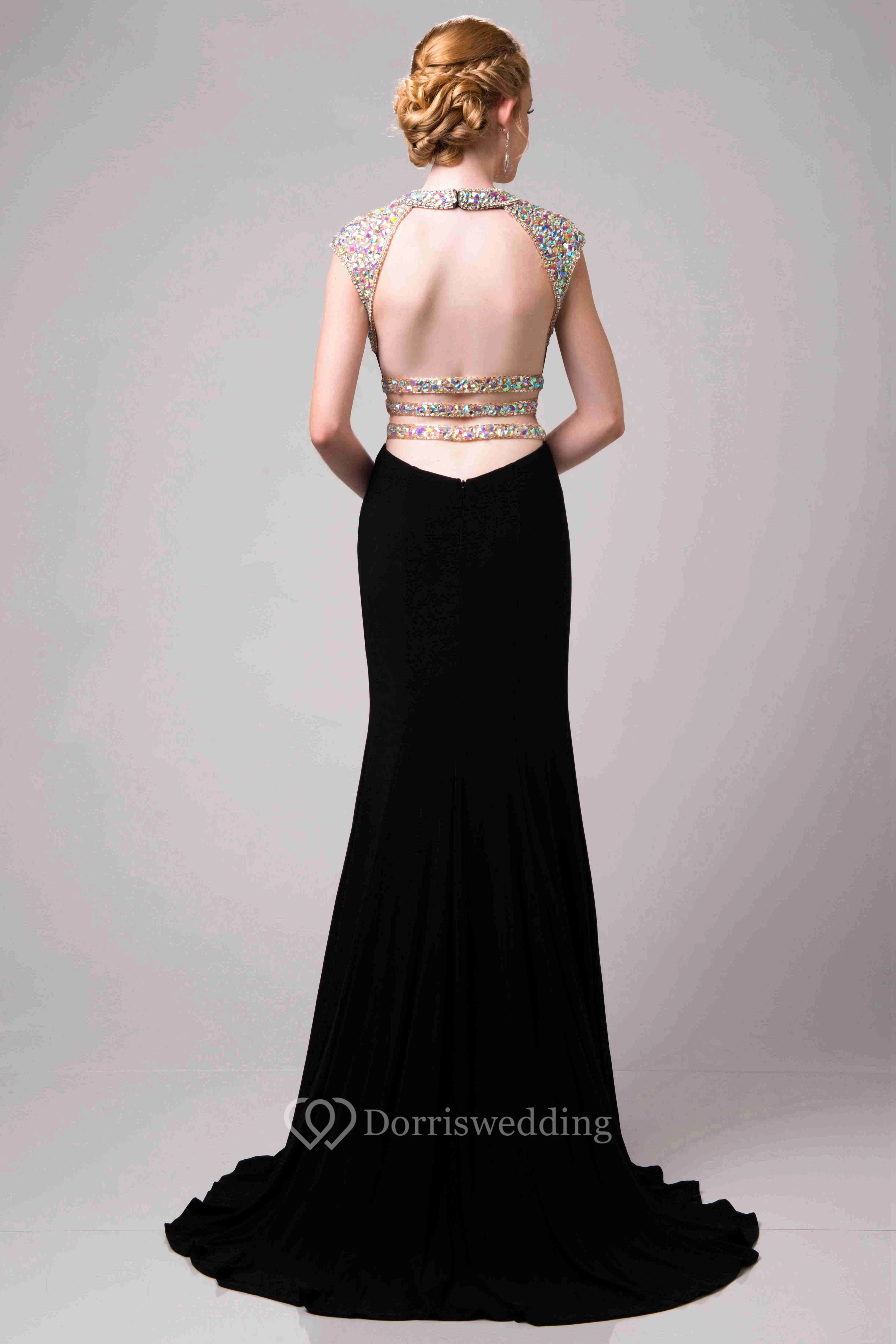Side Slit Jewel Neck Chiffon Prom Dress Featuring Glimmering Waist And Shoulder
