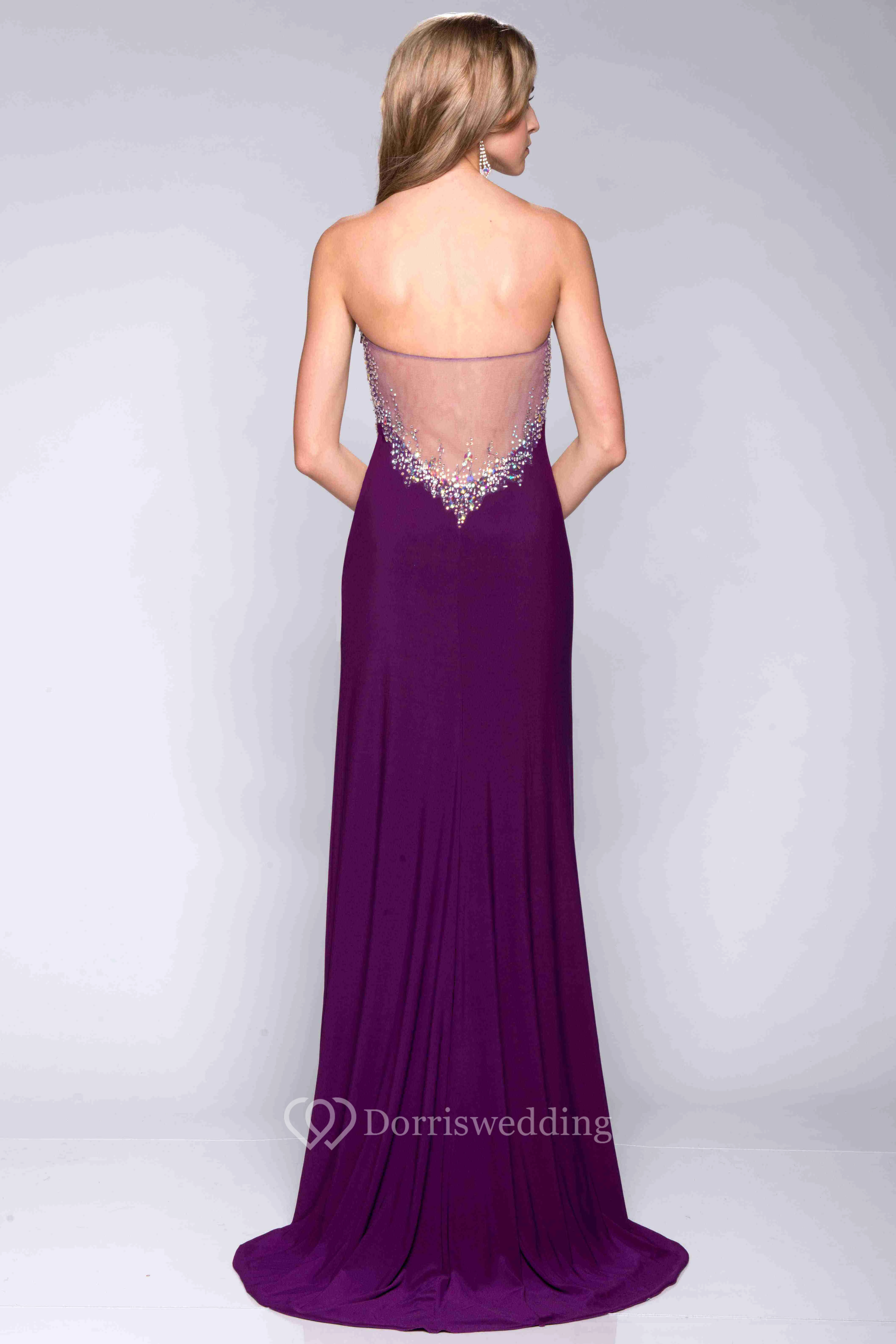 Side Split Form-Fitted Jersey Prom Dress With Illusion Back And Sequin Detailing