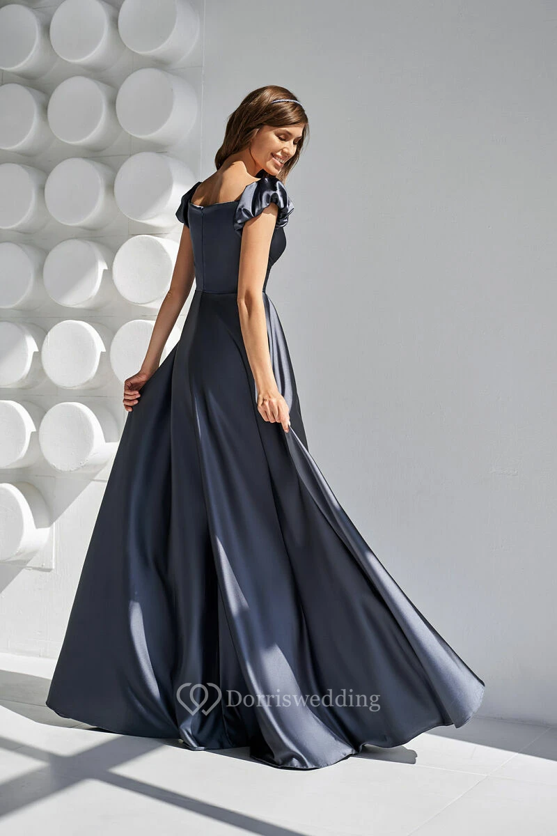 Silver Cap Cowl-neck Ruched A-line Front Split Dress