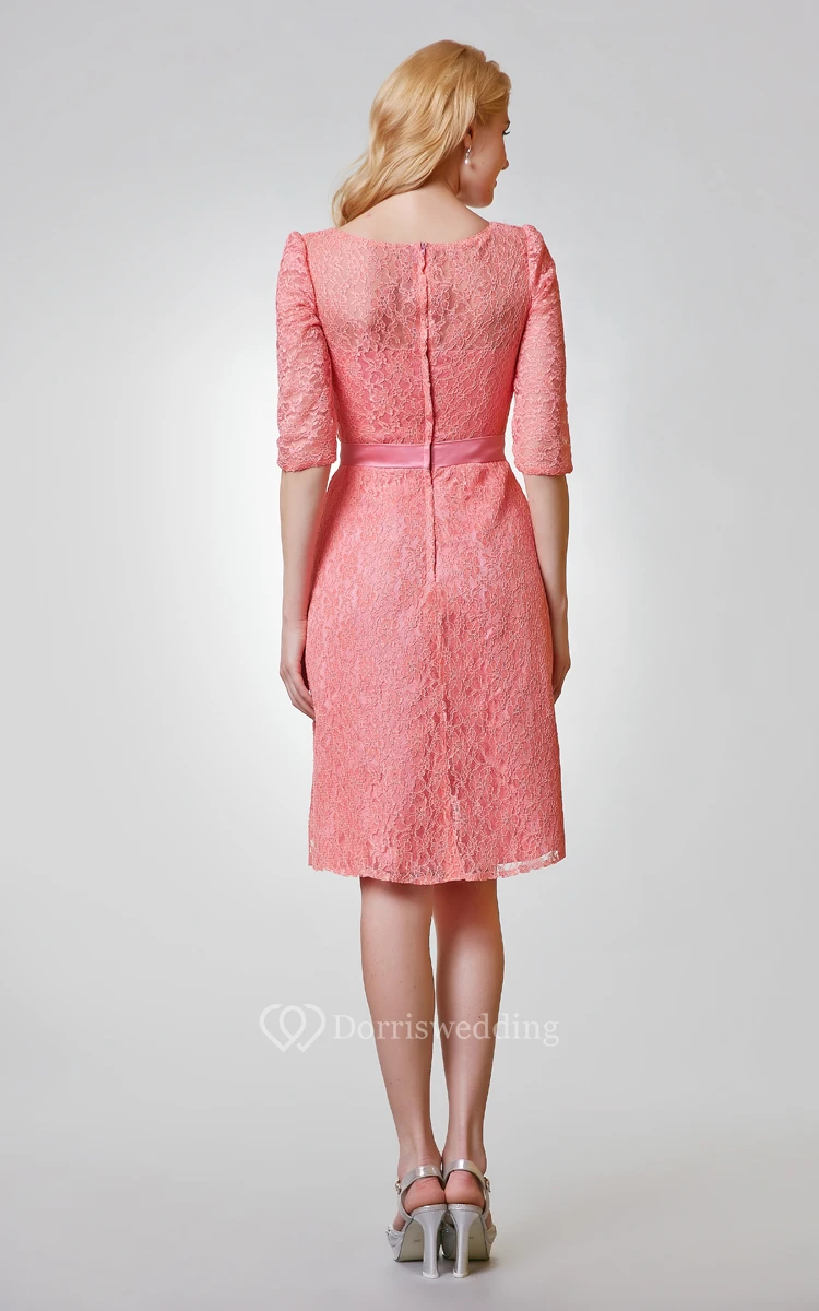Simple 3-4 Length Sleeve A-line Knee Length Lace Dress