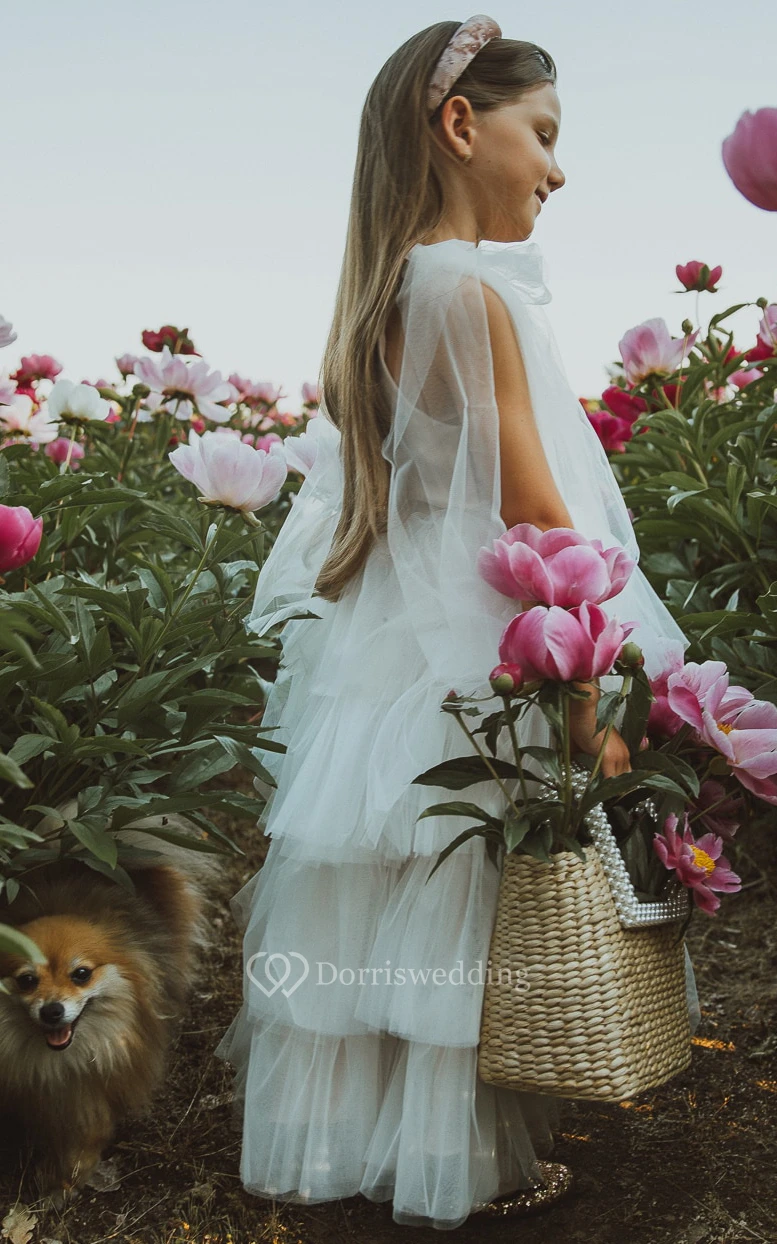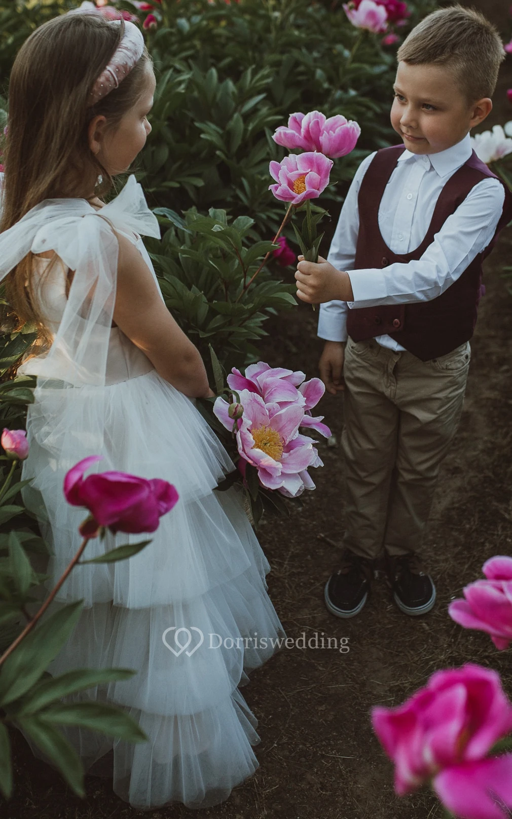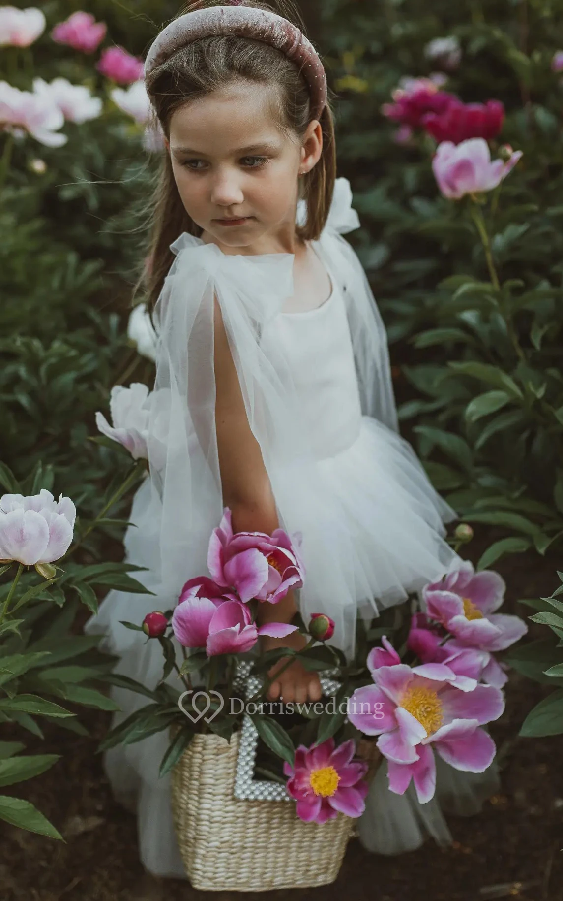 Simple A Line Chiffon Bateau Neckline Knee-length Flowergirl Dress with Bow