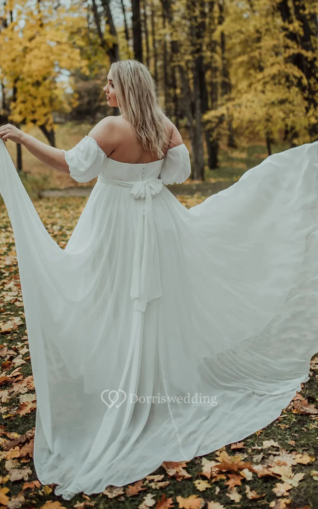 Simple A Line Chiffon Off-the-shoulder Pull Wedding Dress with Bow