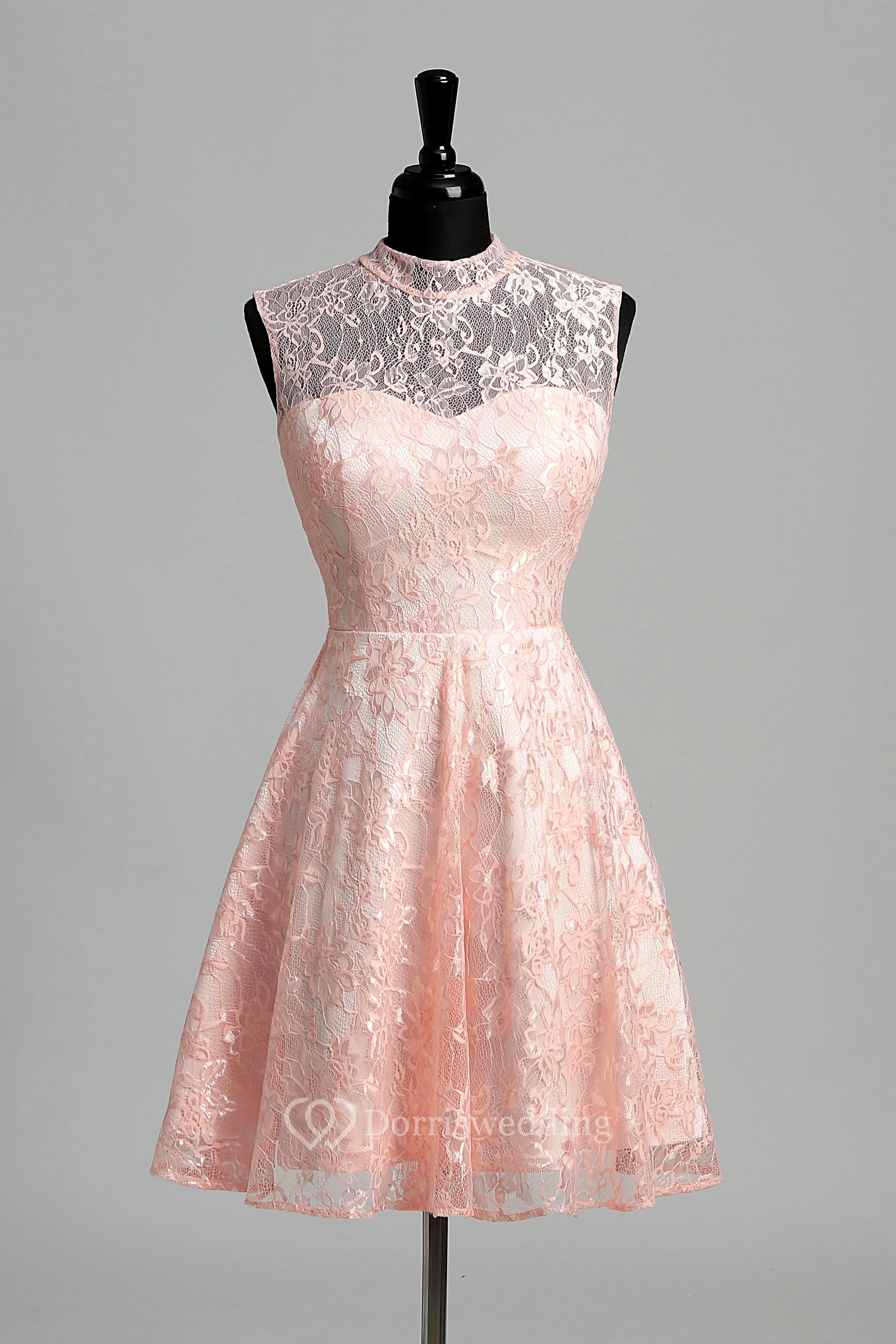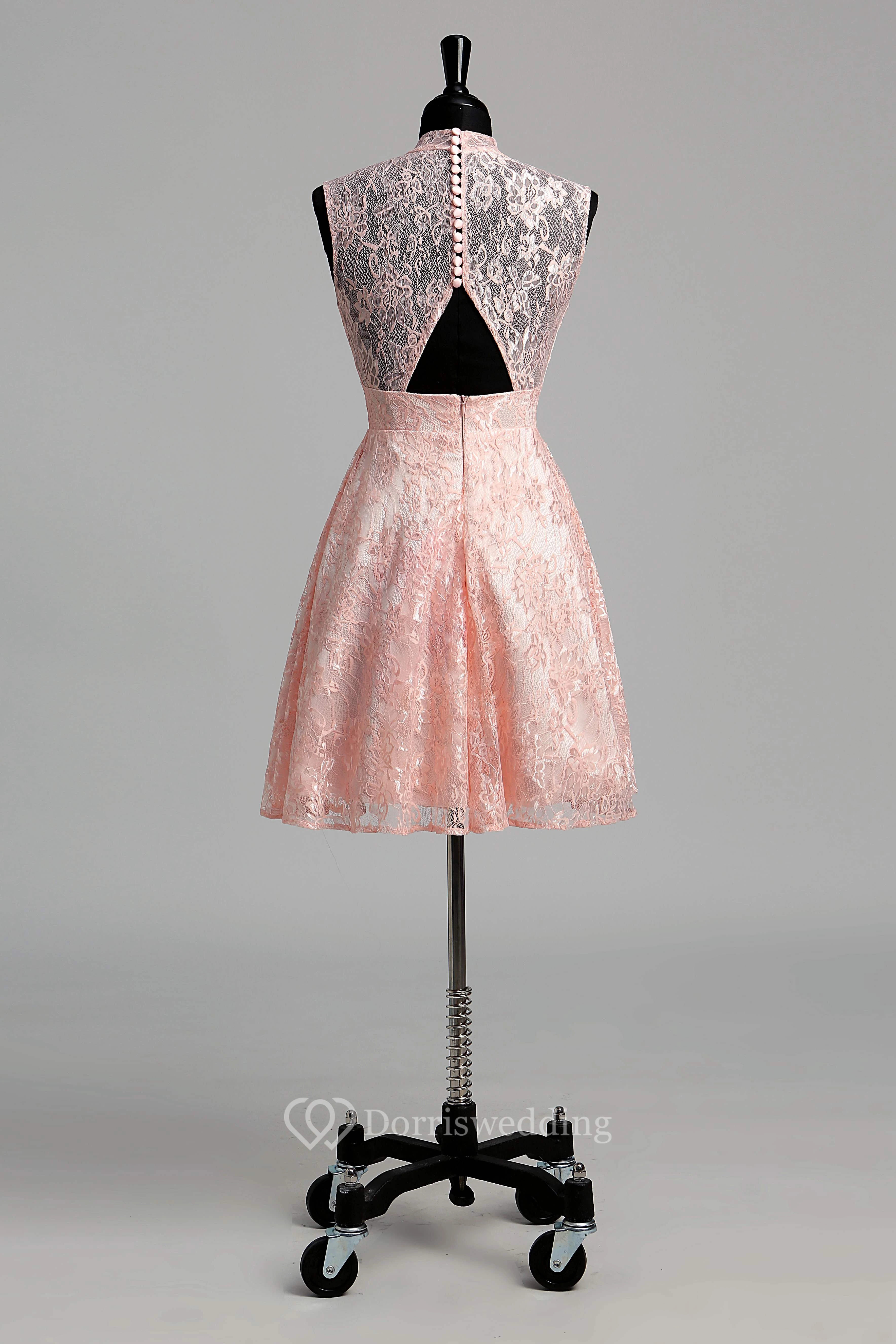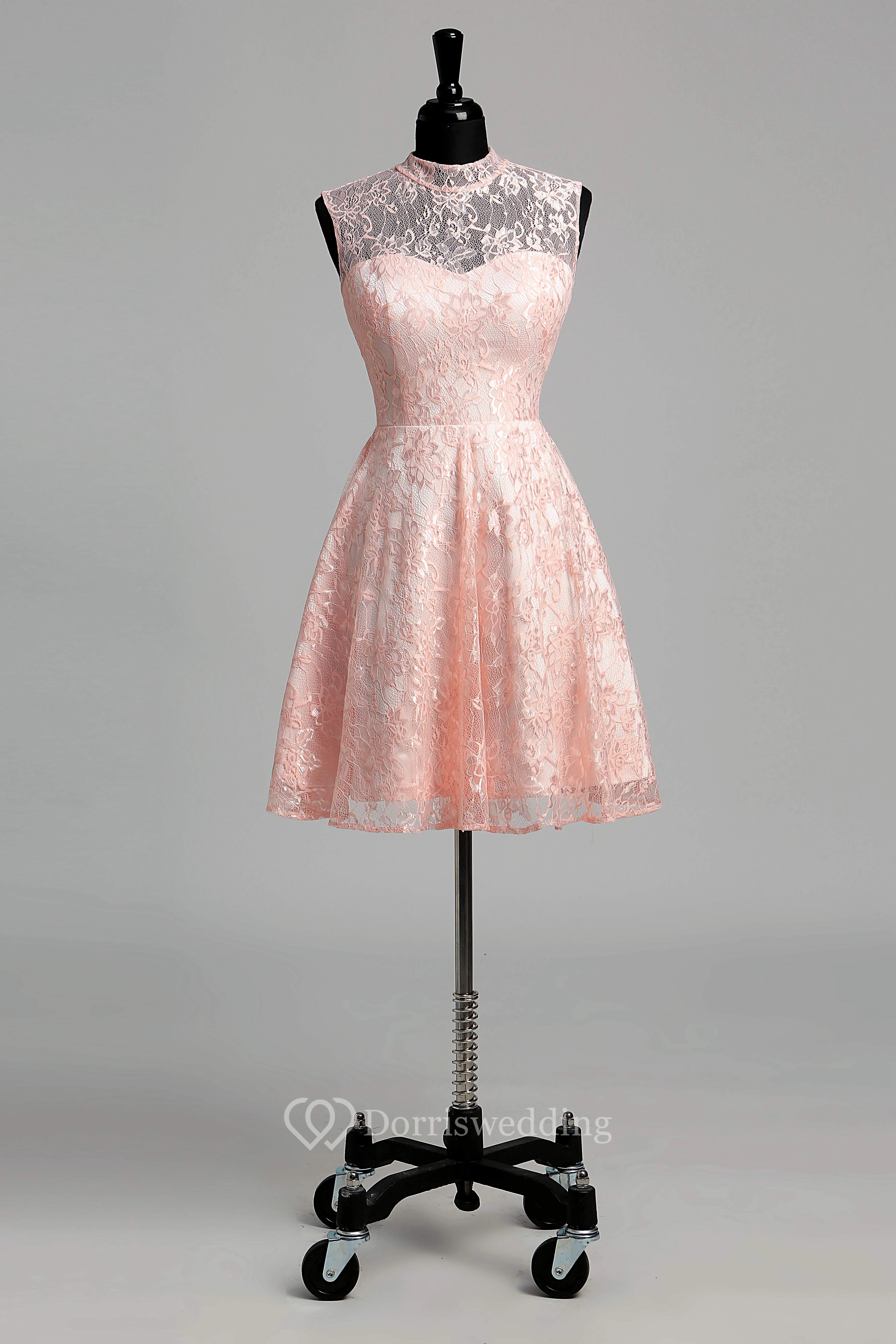 Simple A-line High Neck Sleeveless Short/Mini Lace Dress