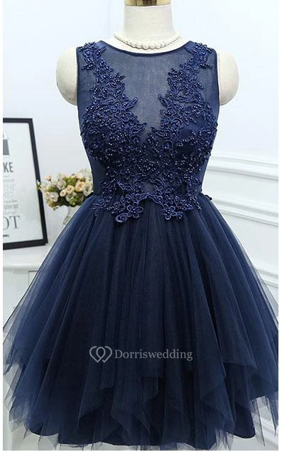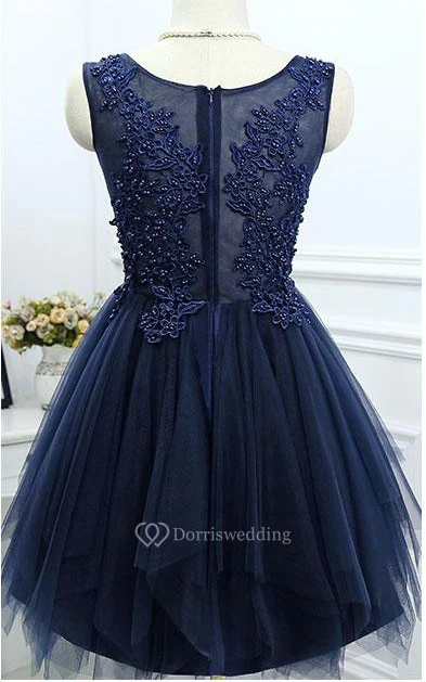 Simple A-line Pleated Short Lace Appliqued Dress