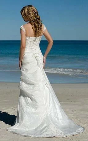Simple a Line Spaghetti Straps Taffeta Summer Beach Bridal Wedding Dress
