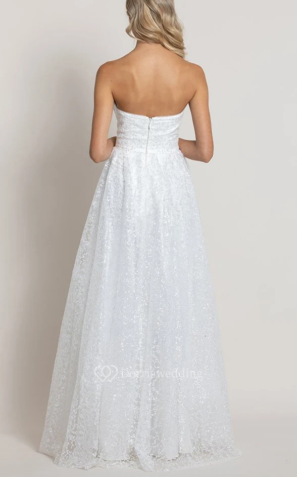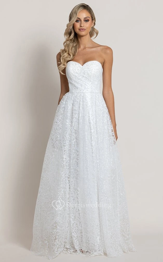 Simple A Line Sweetheart Lace Floor-length Sleeveless Wedding Dress with Ruching