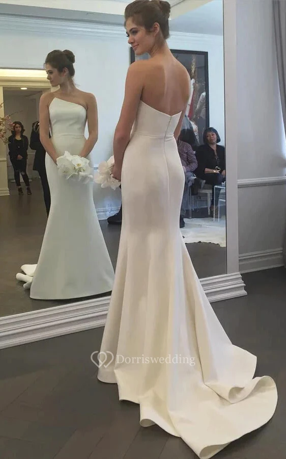 Simple Asymmetrical Sheath Solid Wedding Dress