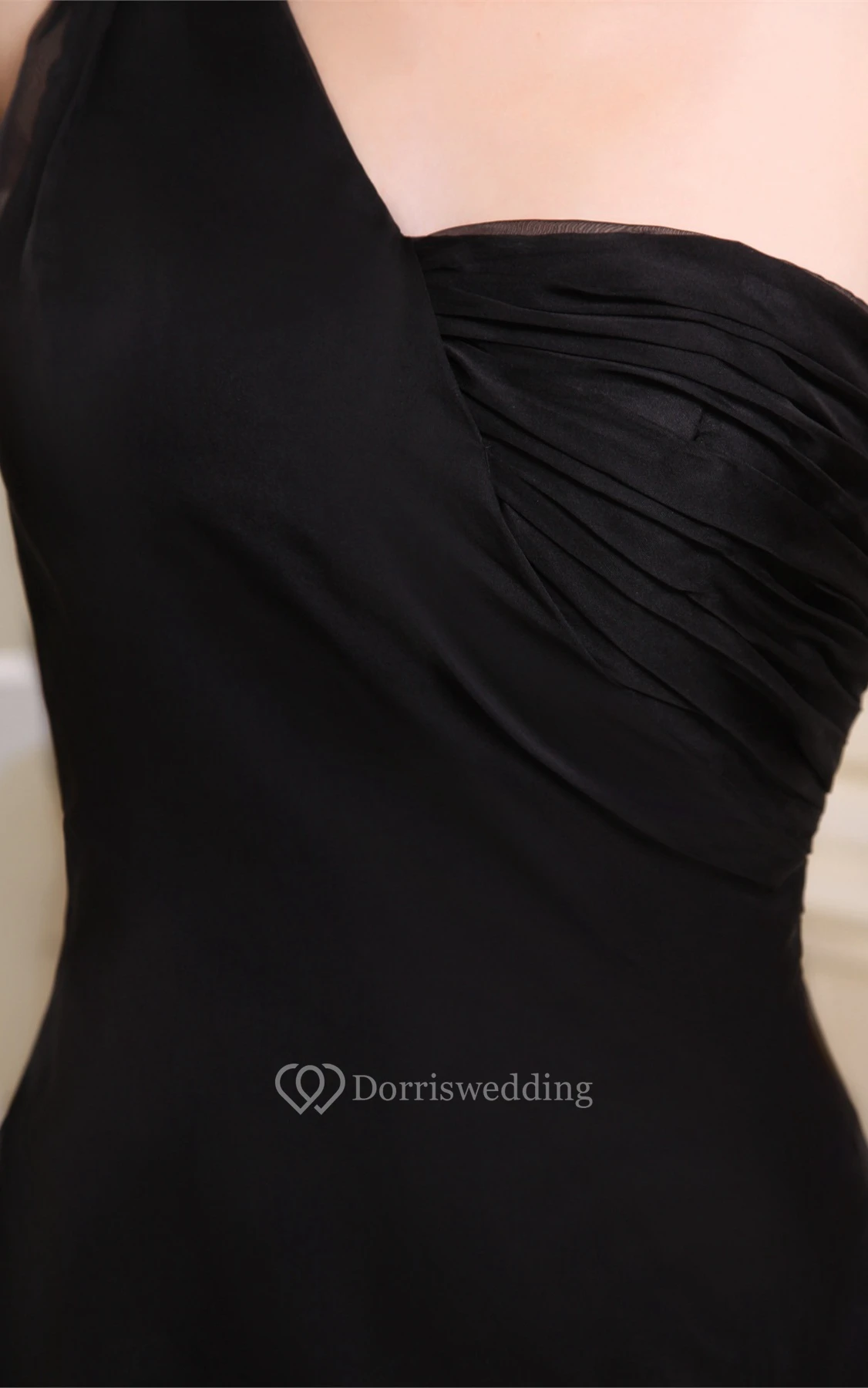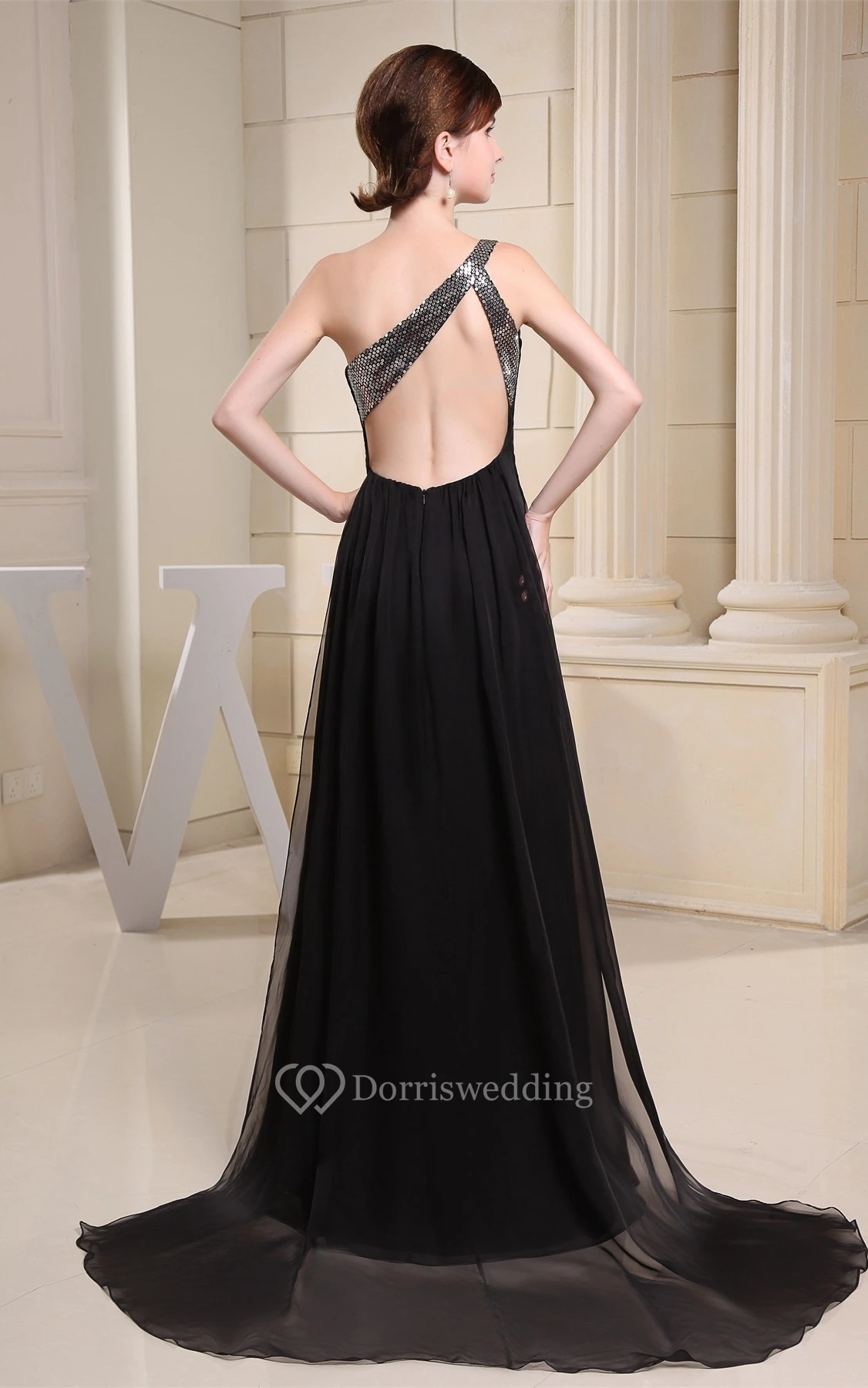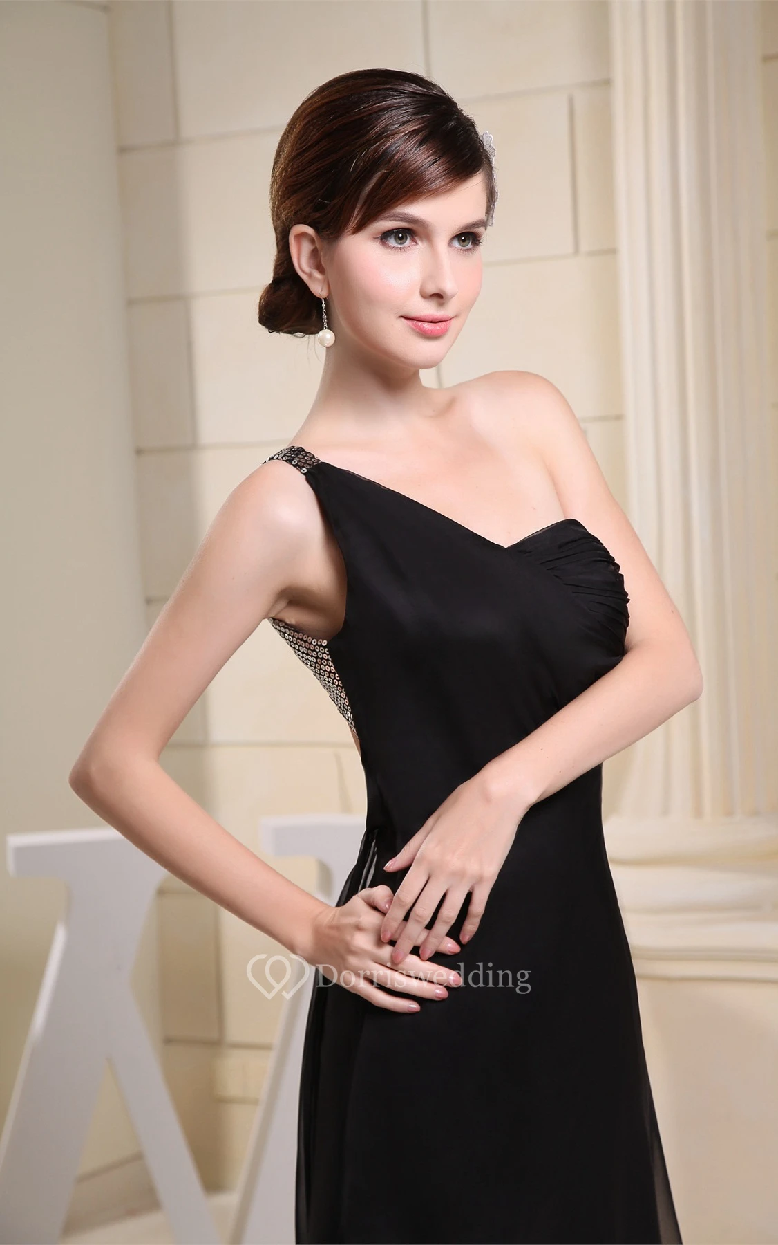 Simple Crystal Long Detailing One-Shoulder Brush Train and Dress With Beading