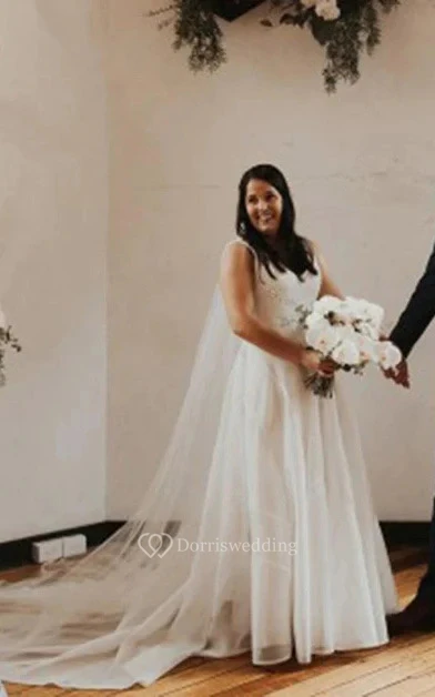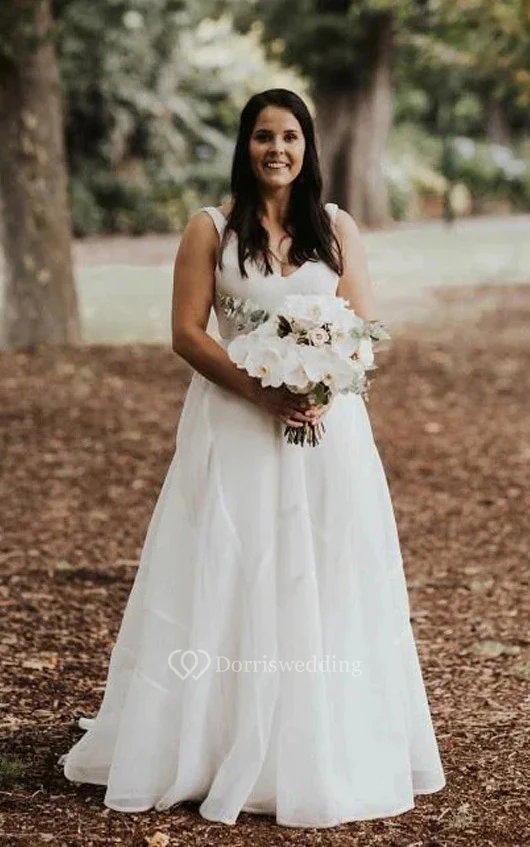 Simple Empire Plus Size Pleated Sleeveless Boho Wedding Dress