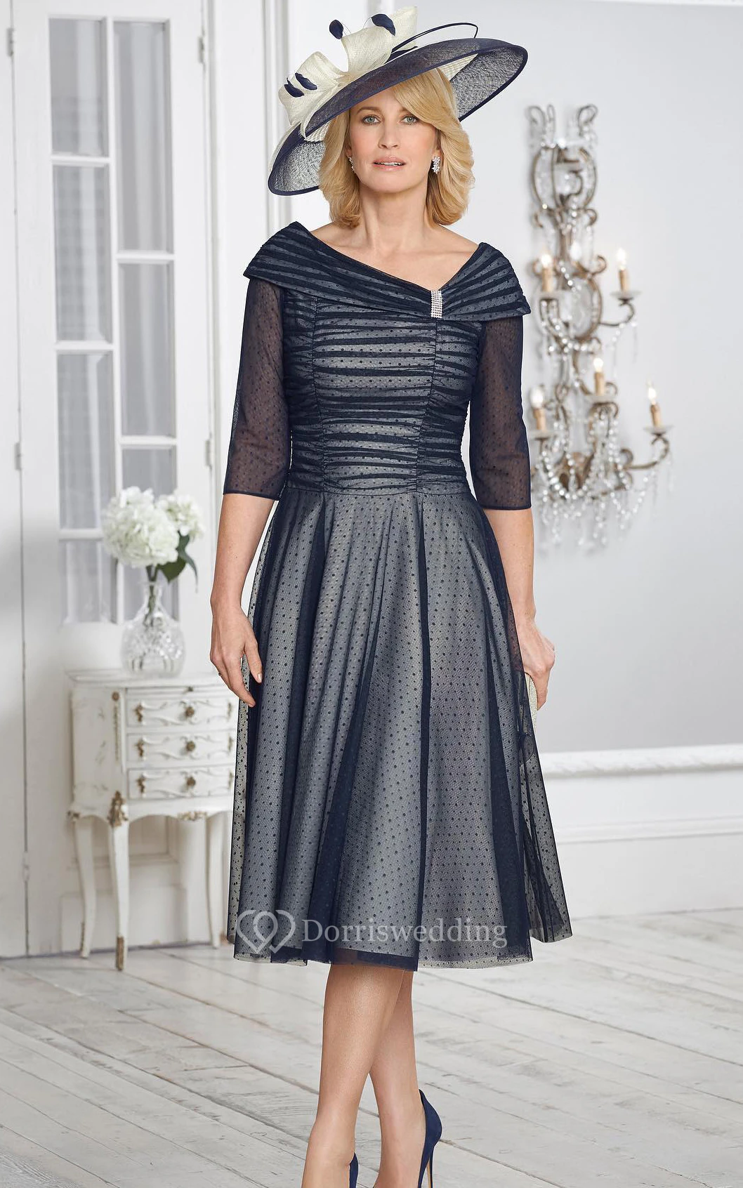 Simple Half Sleeve Knee-length Tulle A Line Mother of the Bride Dress with Ruching