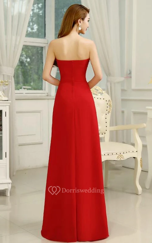 Simple Pretty Strapless Split-Front Column Prom Dress