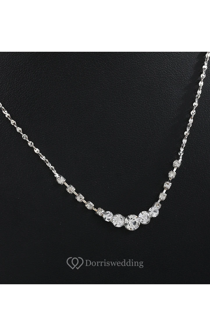 Simple Rhinestone Necklace and Earrings Bridal Jewelry Set