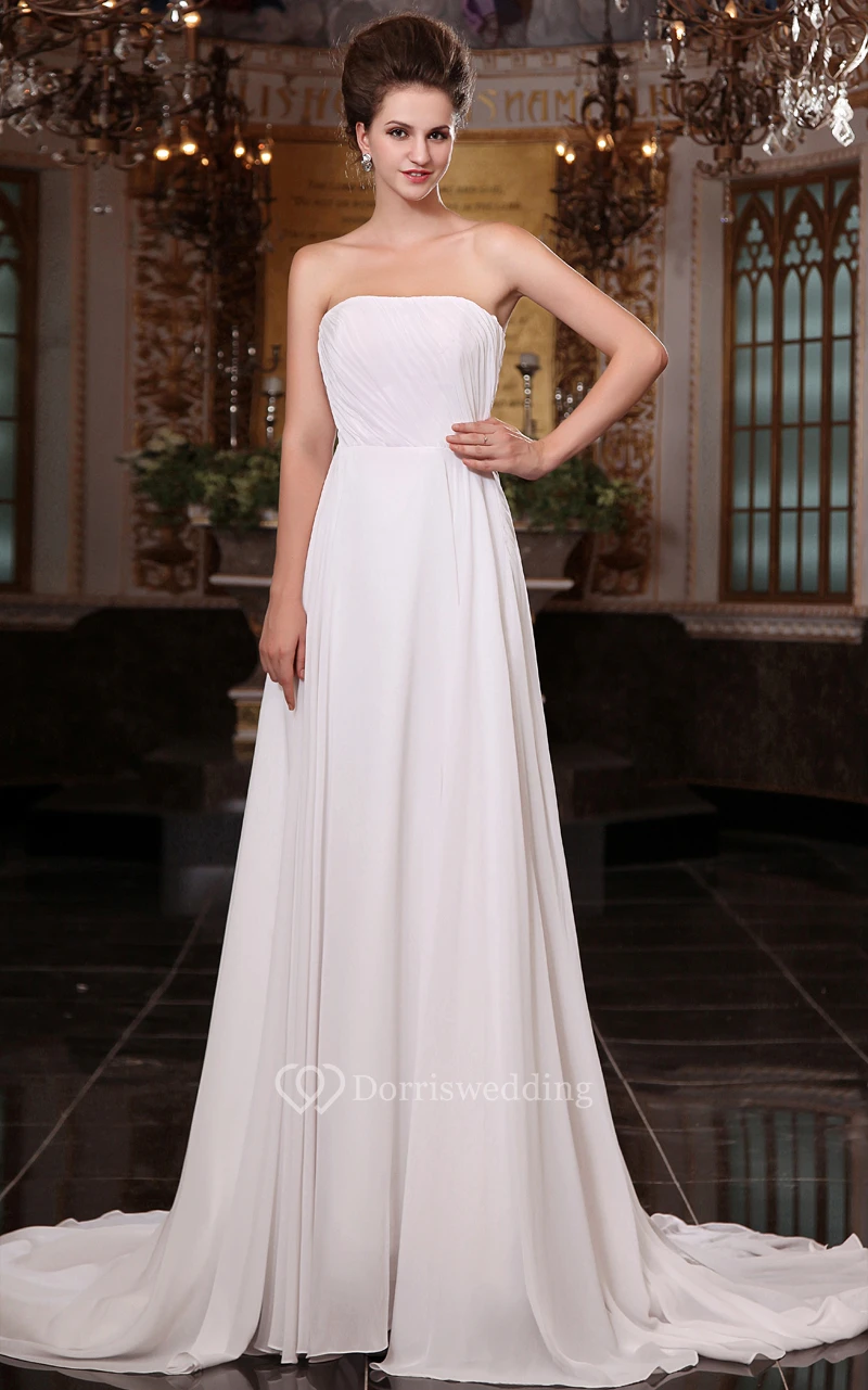 Simple Ruched Bust Chiffon Dress With Ruffles