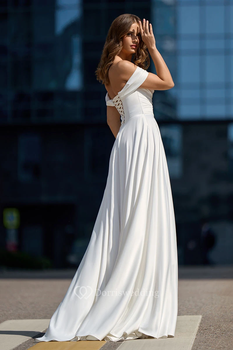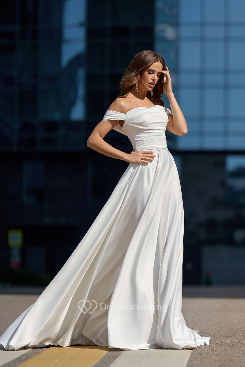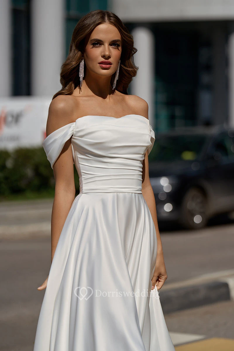 Simple Ruched Empire Satin Corset Floor-length Wedding Dress