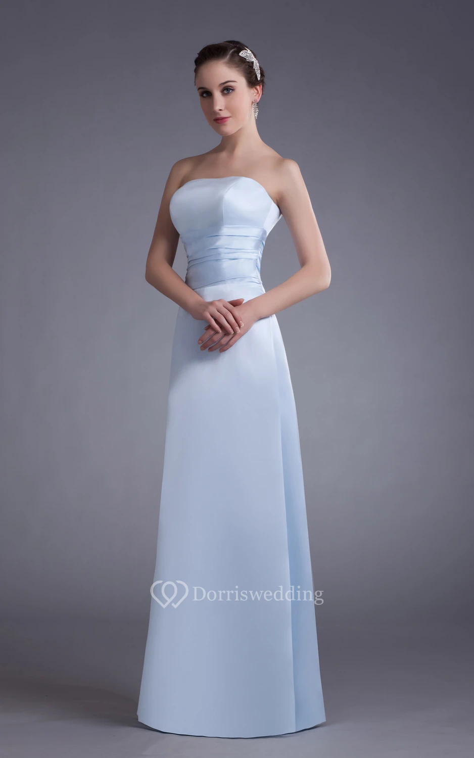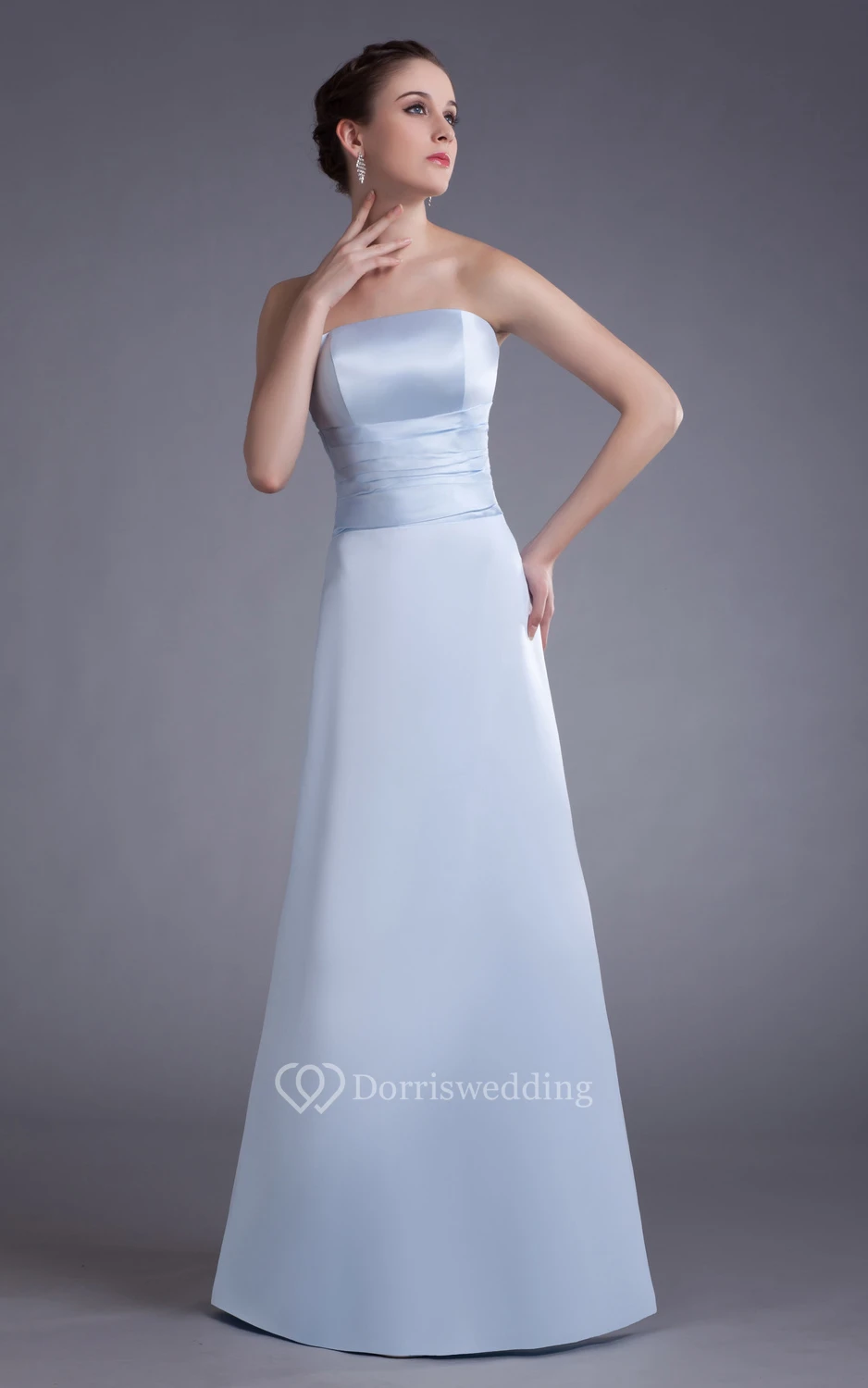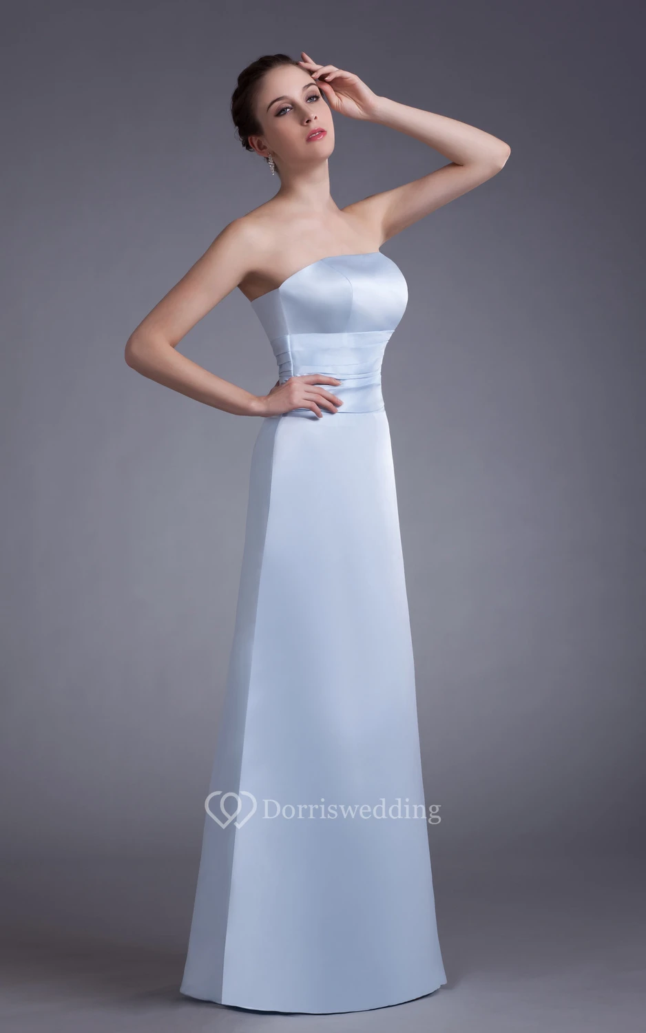 Simple Satin Floor-Length Dress With Ruching Waist