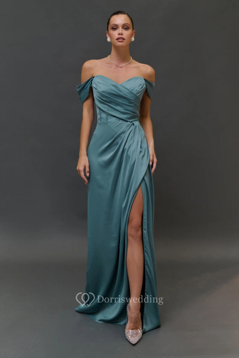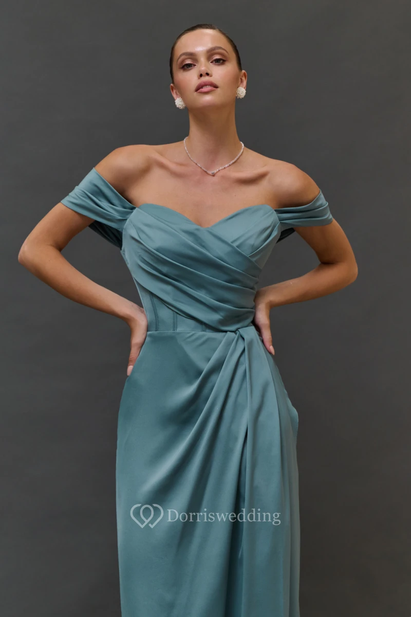 Simple Sheath Ruched Off-the-shoulder Dress