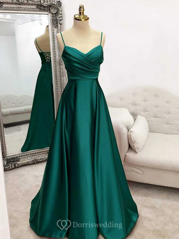 Simple Spaghetti Empire Criss-cross Satin A-line Prom Dress