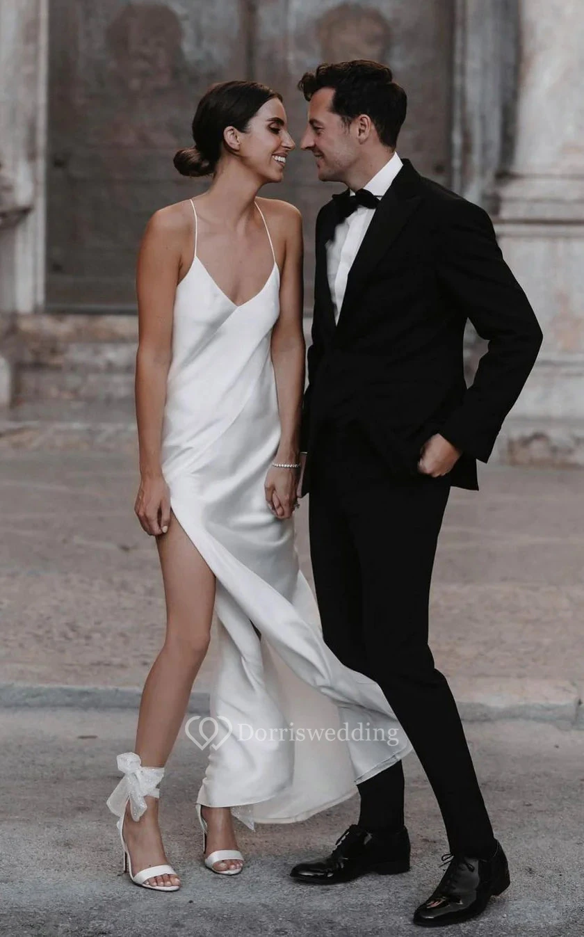 Simple Spaghetti Sexy Side-split Sheath Wedding Dress