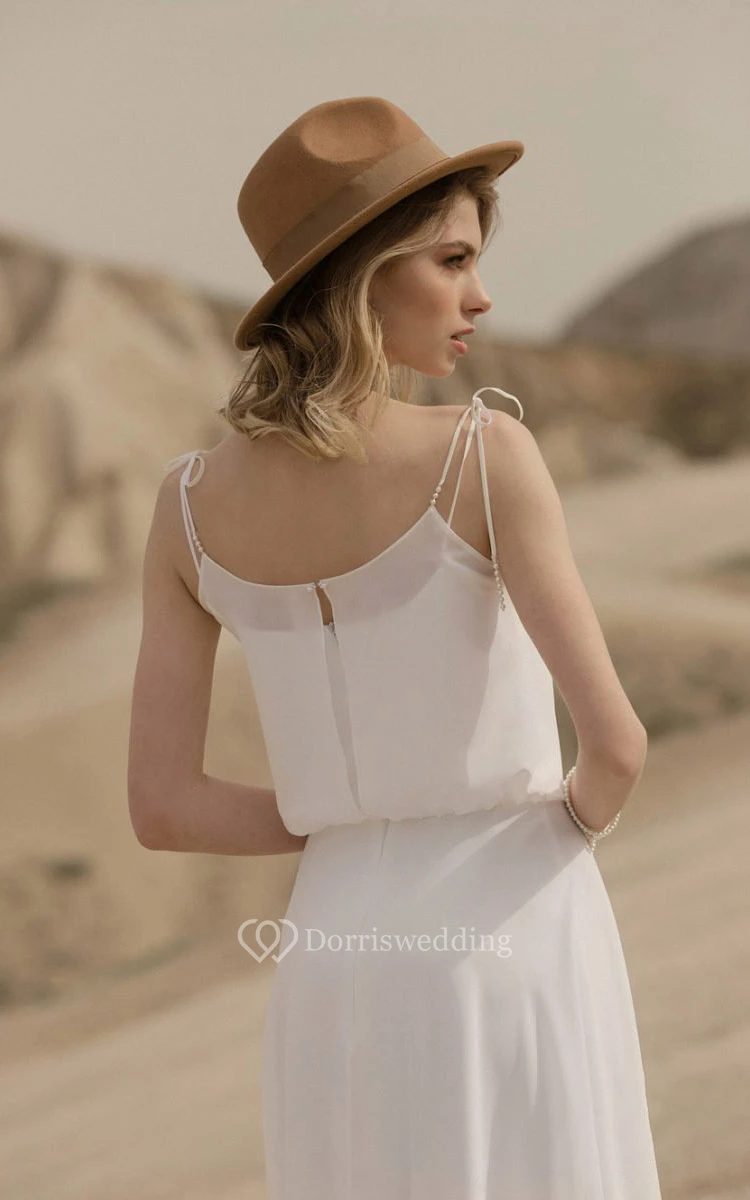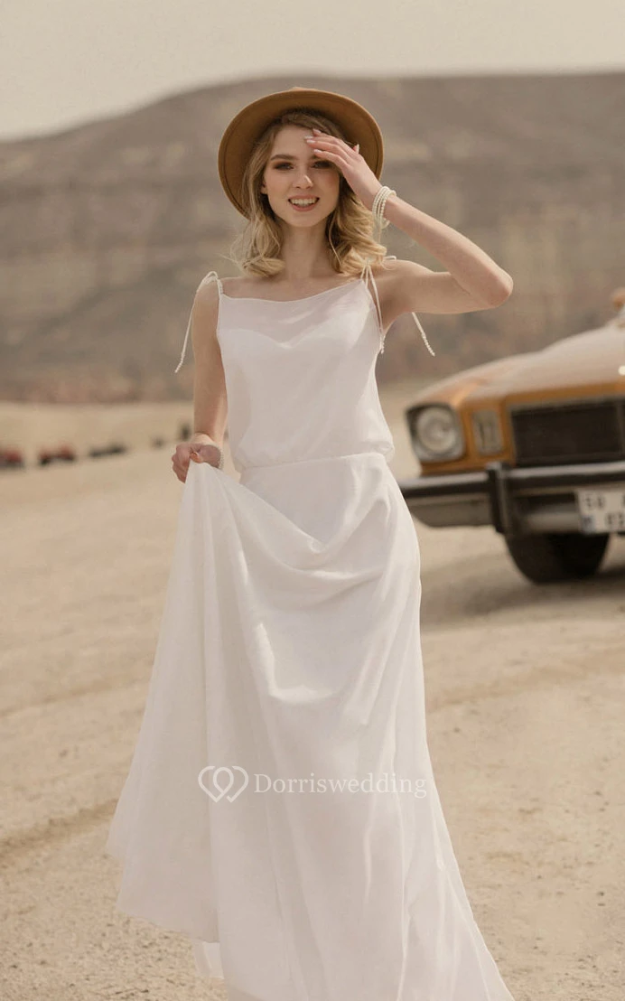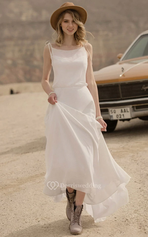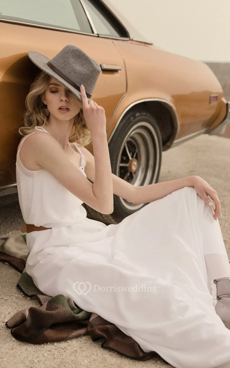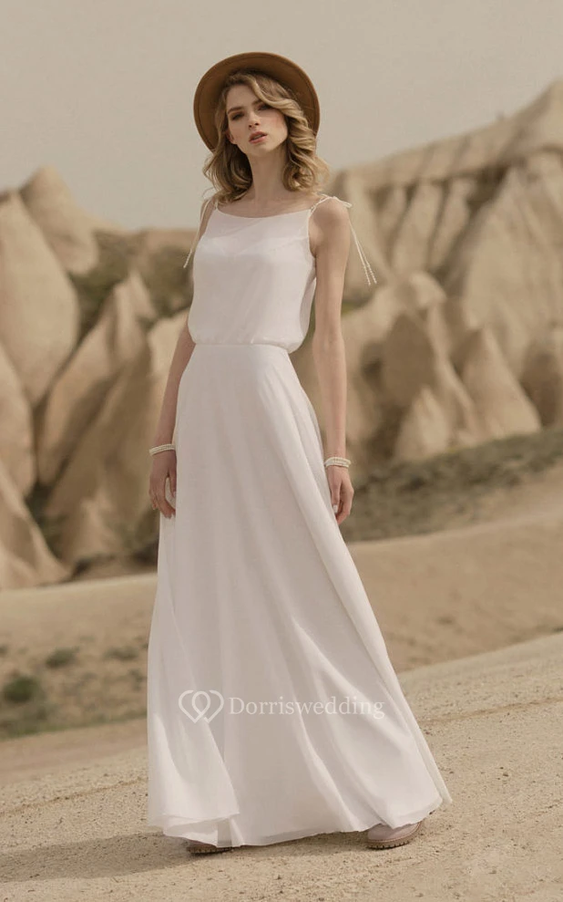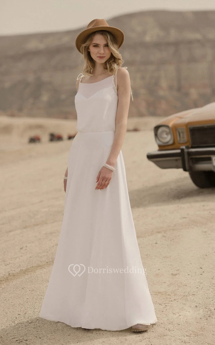 Simple Spaghetti Sheath Country Sleeveless Floor-length Wedding Dress