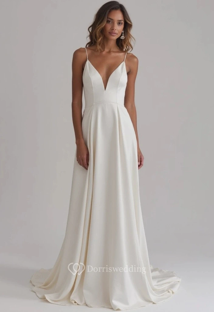 Simple Spaghetti V-neck Satin Chiffon Dress