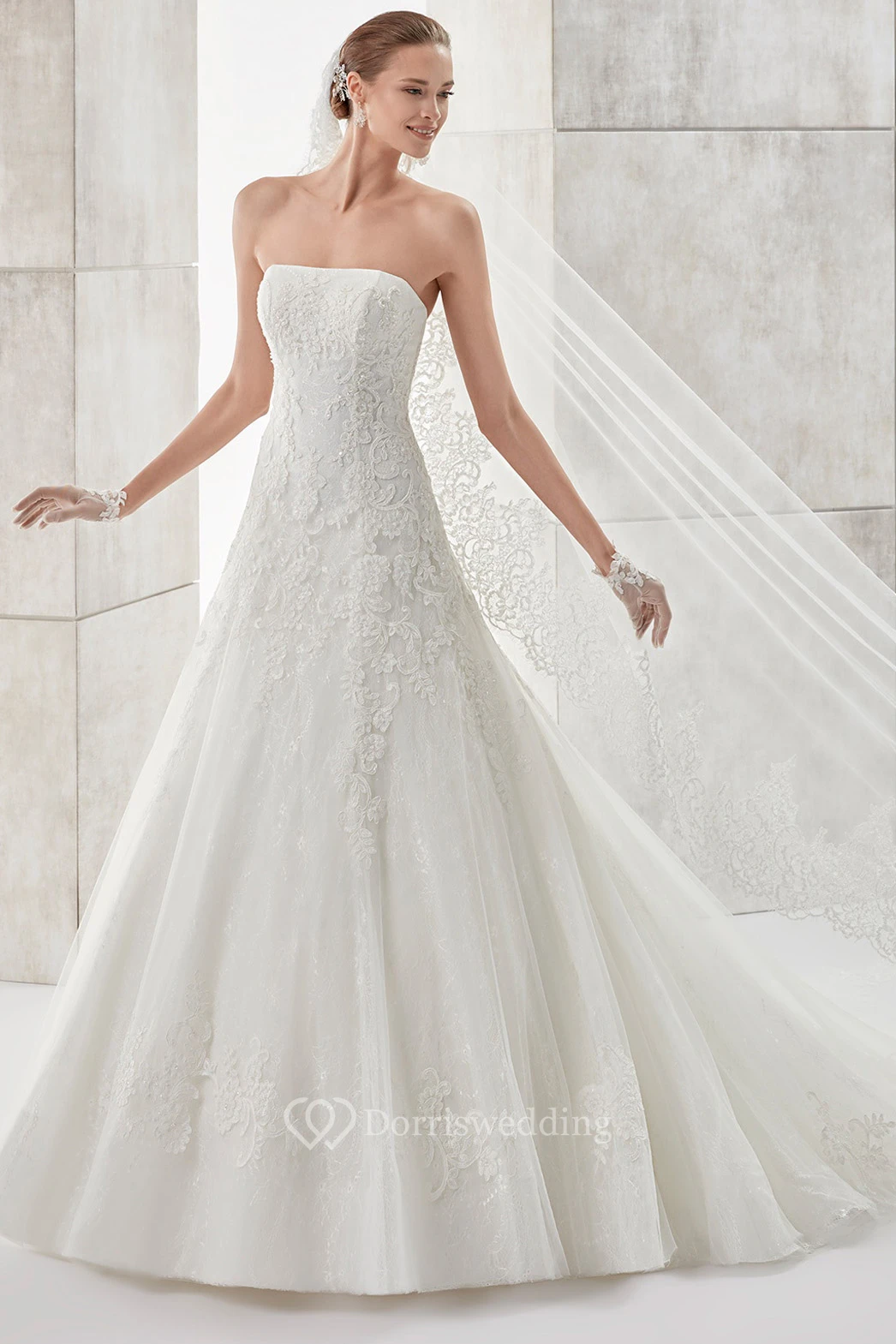 Simple Strapless A-line Wedding Dress with Appliques and Brush Train