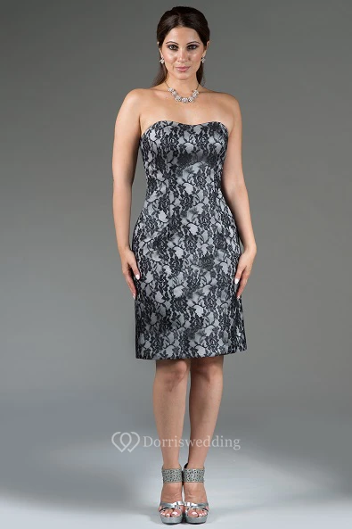 Simple Strapless Sheath Knee Length Lace Bridesmaid Dress