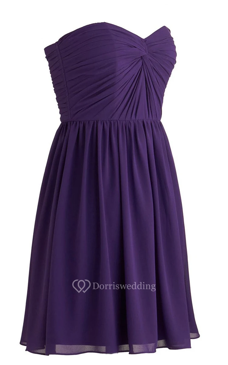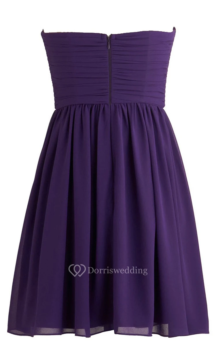 Simple Strapless Sweetheart Drapped Chiffon Short Dress
