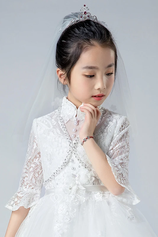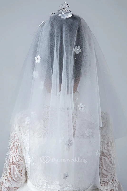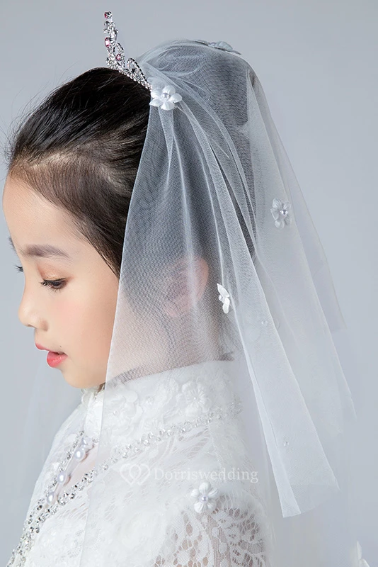 Simple Style Double Layer Floral Tulle Flower Girl Veil